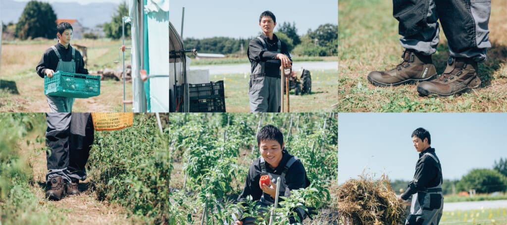 アシックスのワークシューズを着用し、一日農作業をした工藤さん。工藤さんのお気に入りポイントは、ゴアテックスファブリクスならではの防水透湿性。雨の日の作業でも気にせず動けて、泥汚れも簡単に洗い流せるその扱いやすさが嬉しいという。