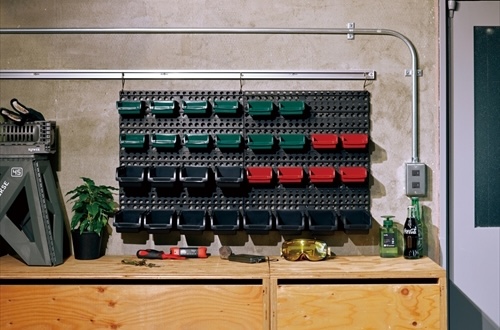壁にボードを取り付けて付属の収納ケースをセットすれば、あらゆる荷物がスマートに小分けできるストレージに。マルチなカラーリングはインテリアの差し色に最適。