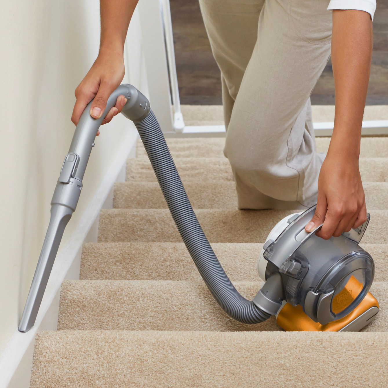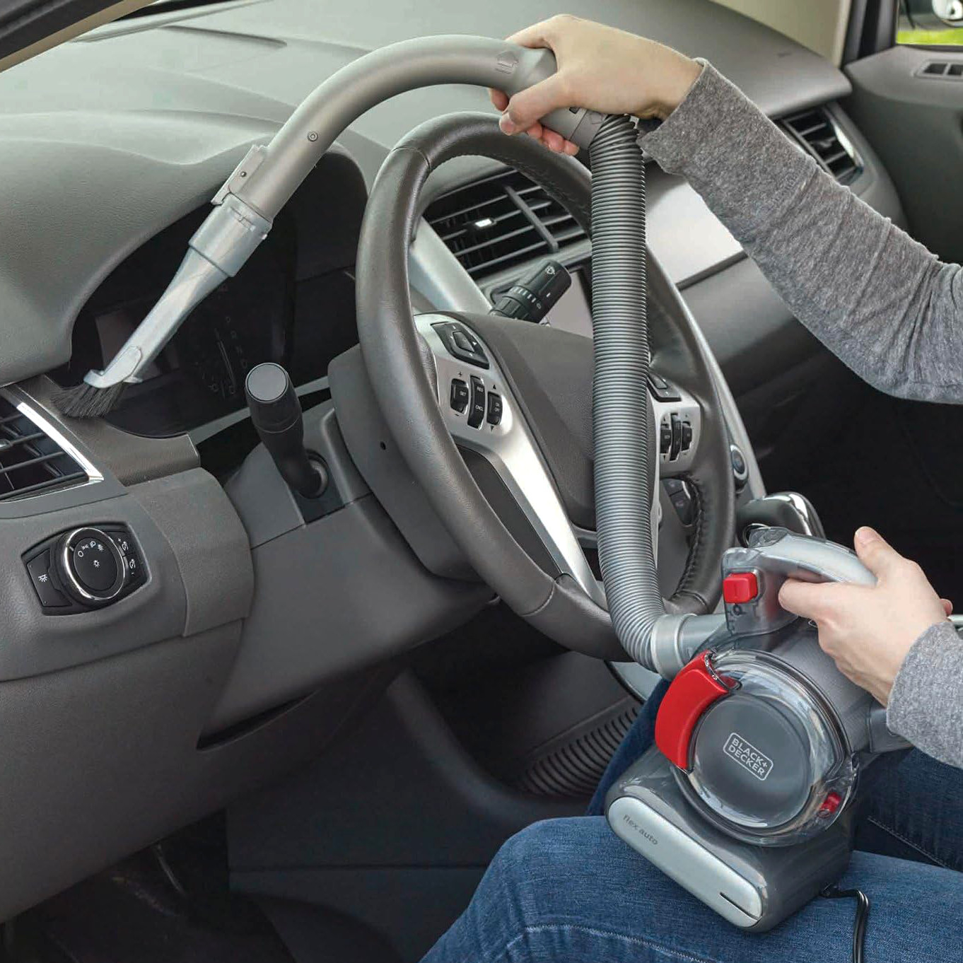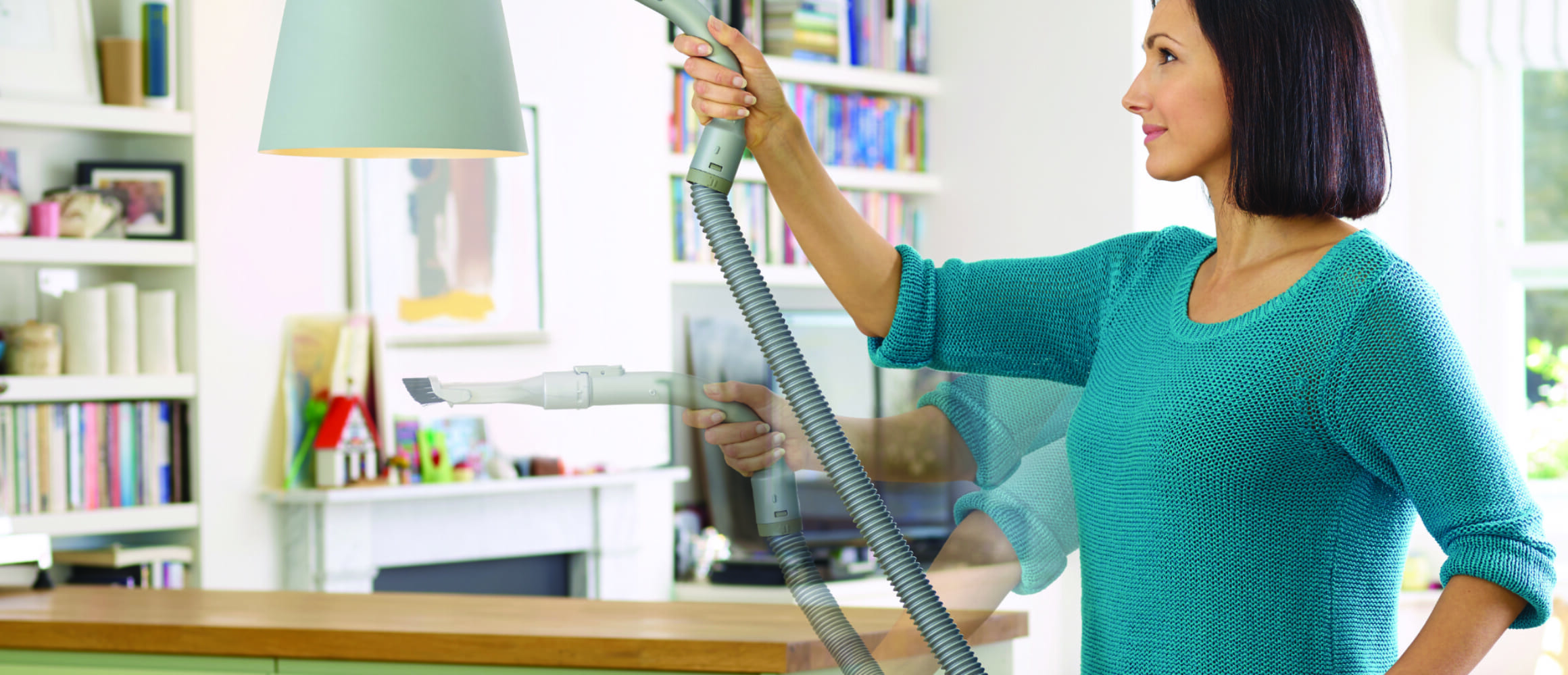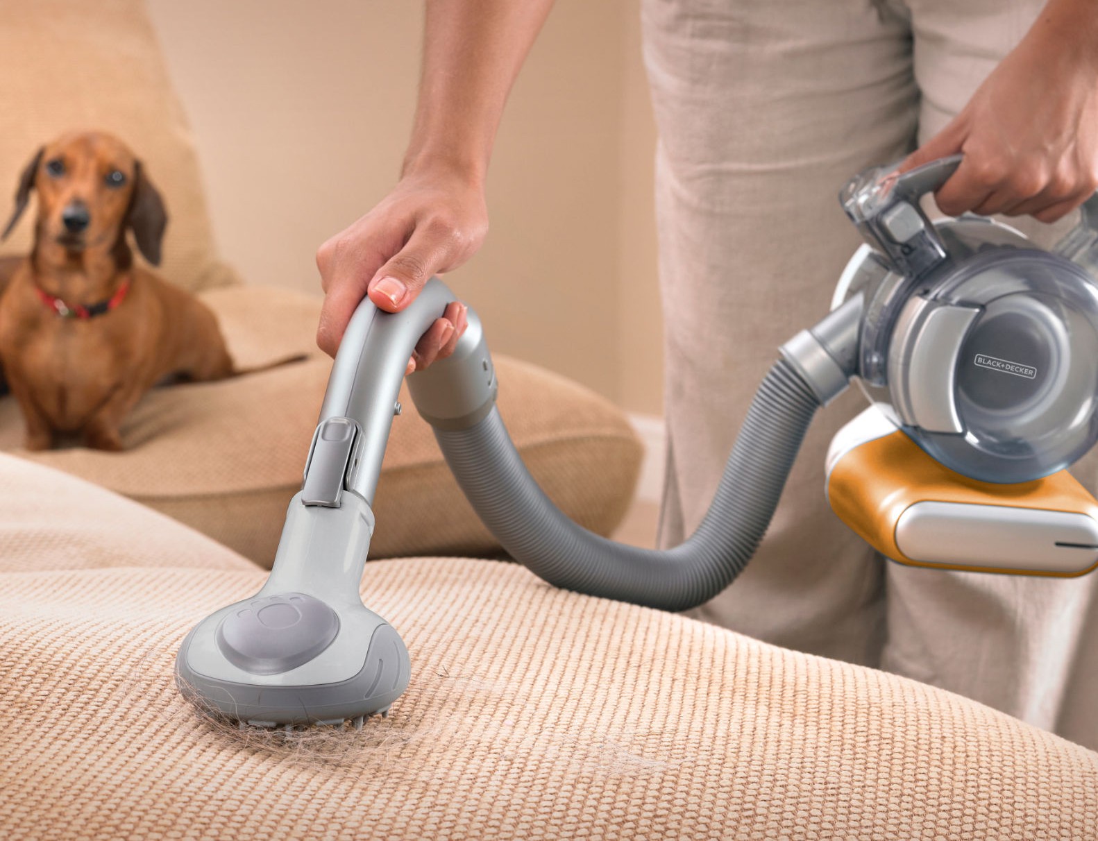 フレキシブルに稼働するホースは、階段やテーブルの下、棚の上や照明、車内など様々な箇所に対応できるのも見どころだ。隙間用、ブラシ、ペット&ファブリック対応のノズルが揃い、フロア用あるから床掃除もしやすい。