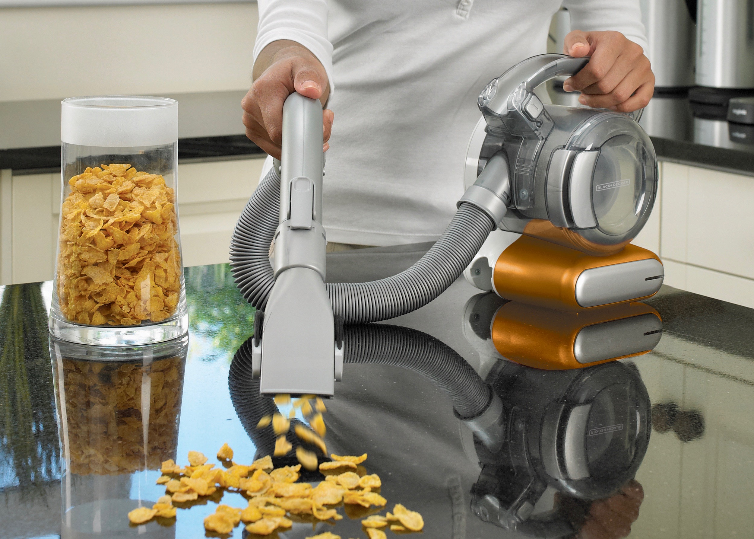 今時の掃除機はコードレスが主流だけど、コンパクトなものほど保管スペースを取らないので便利だ。この“フレキシー”は定番のスティックタイプではなく、最大1.5mまで伸縮するホースを備え、全長約30cmに収めたハンディ掃除機。