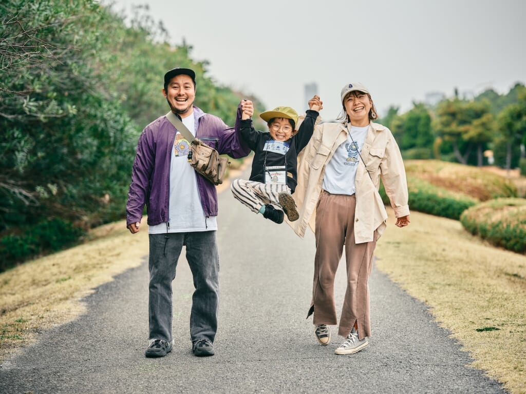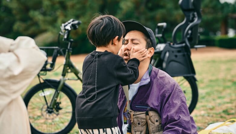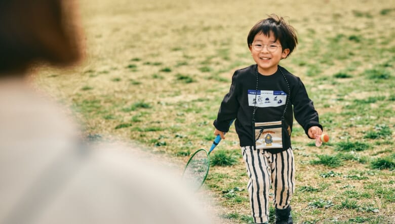 芝生エリアに到着すると、グランドシートを広げて家族でピクニックを満喫。村田さんが笑顔で見守るなか、澄くんがシャボン玉であそんだり、恵利さんとバドミントンをやったり、ピースフルなひと時を過ごしていた。