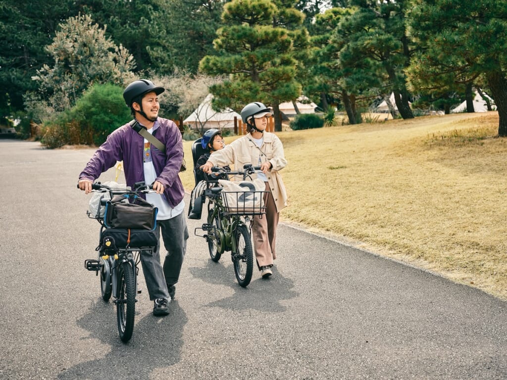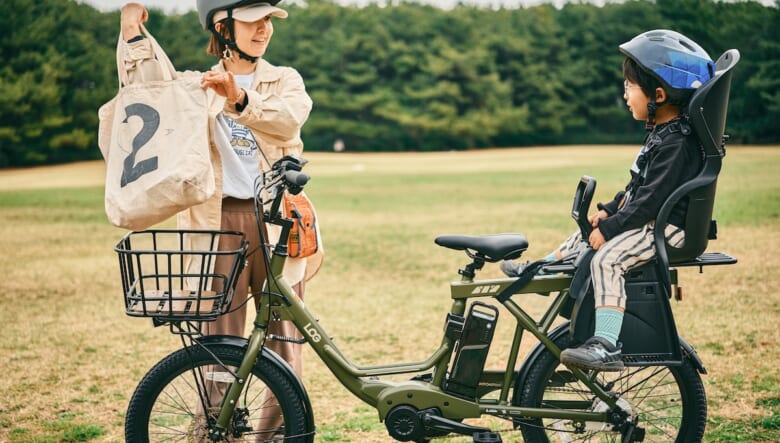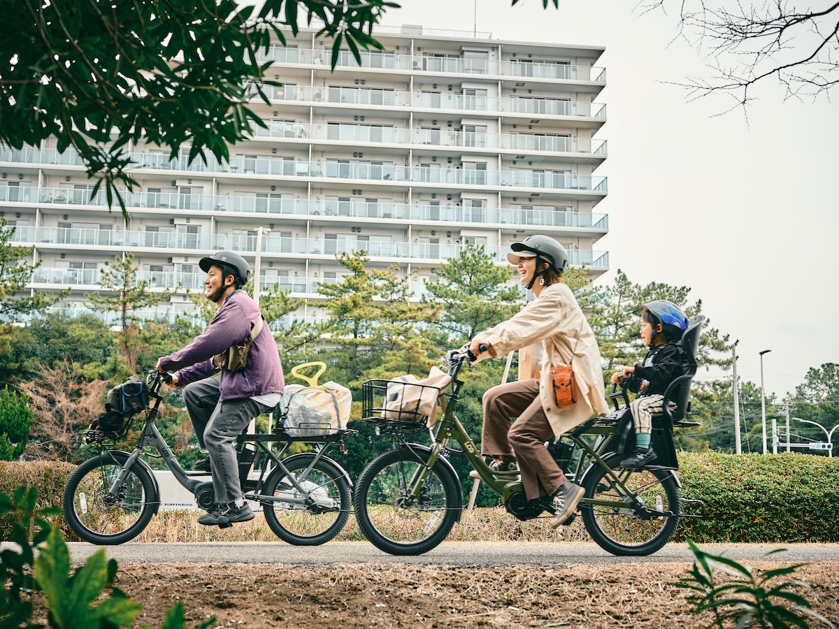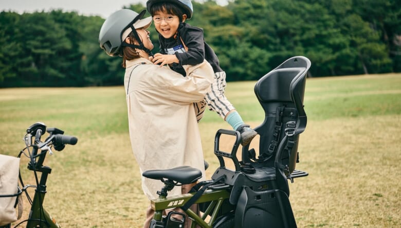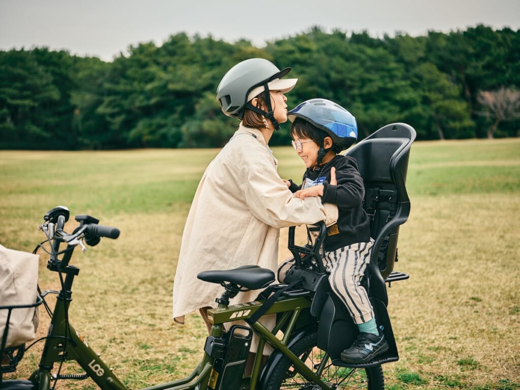 普段はクルマ移動の村田さんは、電動アシスト自転車に乗るのは数年ぶり。対して恵利さんは、チャイルドシート搭載車を10年ほど愛用しているヘビーユーザー。三男の澄(すむ)くんもチャイルドシートでママと一緒にお出かけすることが多いとか。