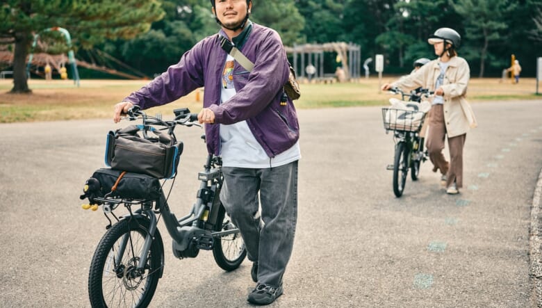 「これ、普通の電動アシスト自転車よりも軽いと思うよ。澄が乗ったまま押しても、スイスイ進んでくれるし」(恵利さん)
