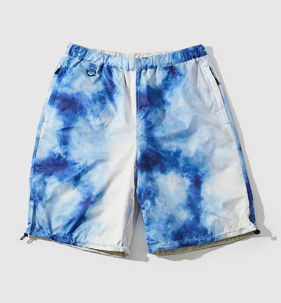 ベーシックな単色が揃うなか、スタイルのアクセントになるスカイタイダイ柄(写真)もあり。シンプルになりがちなTシャツ×ショーツのコーデは、春夏らしい柄モノで変化を付けてみては?