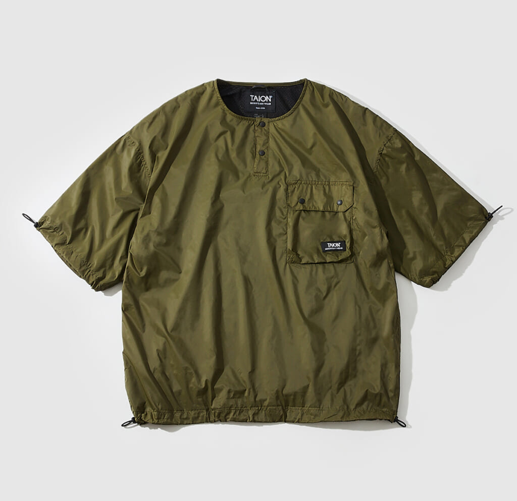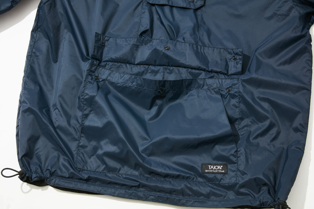 こちらは他のマウンテンライン同様、高密度ナイロンのマイクロリップストップ生地を採用し、フロントもスナップボタンなので、スポーティかつアクティブな着こなしにフィットする。