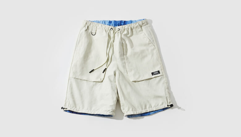 これからの季節、デイリーで活躍するリバーシブルショーツは、裾のアジャスターでシルエットを変えられるのも魅力的な万能アイテム。フロントに備えられたDカンはカラビナを使ってクルマの鍵やアウトドアギアを引っ掛けられる。