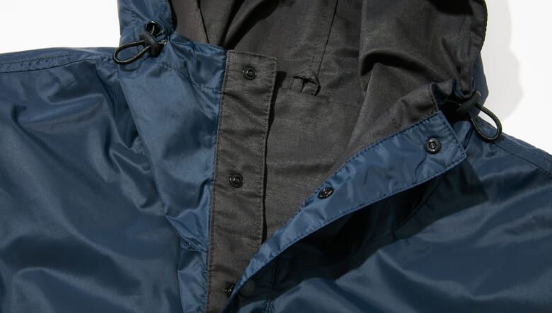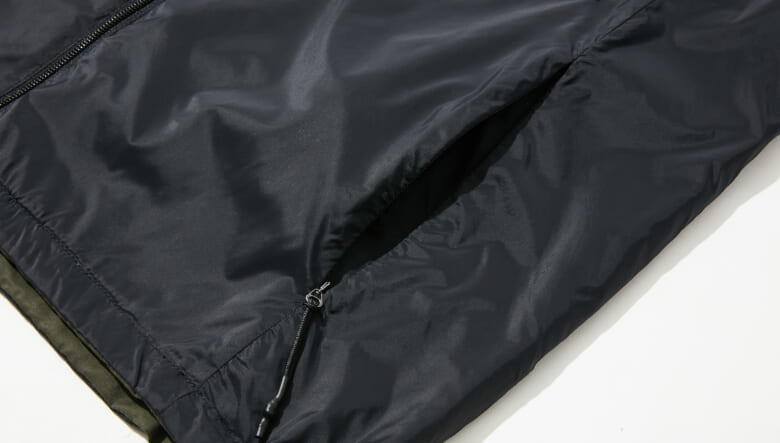 裏表で異素材が楽しめるリバーシブルアノラック。