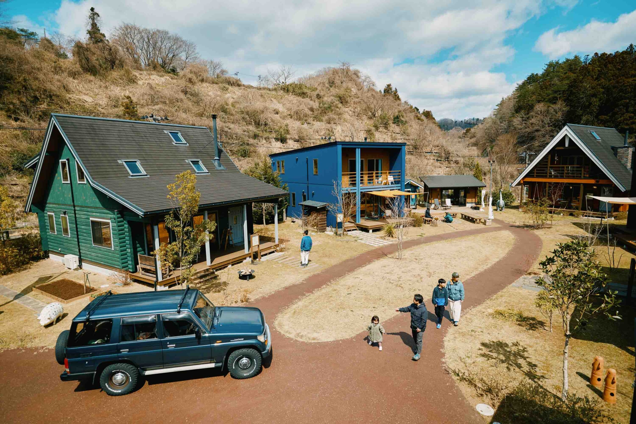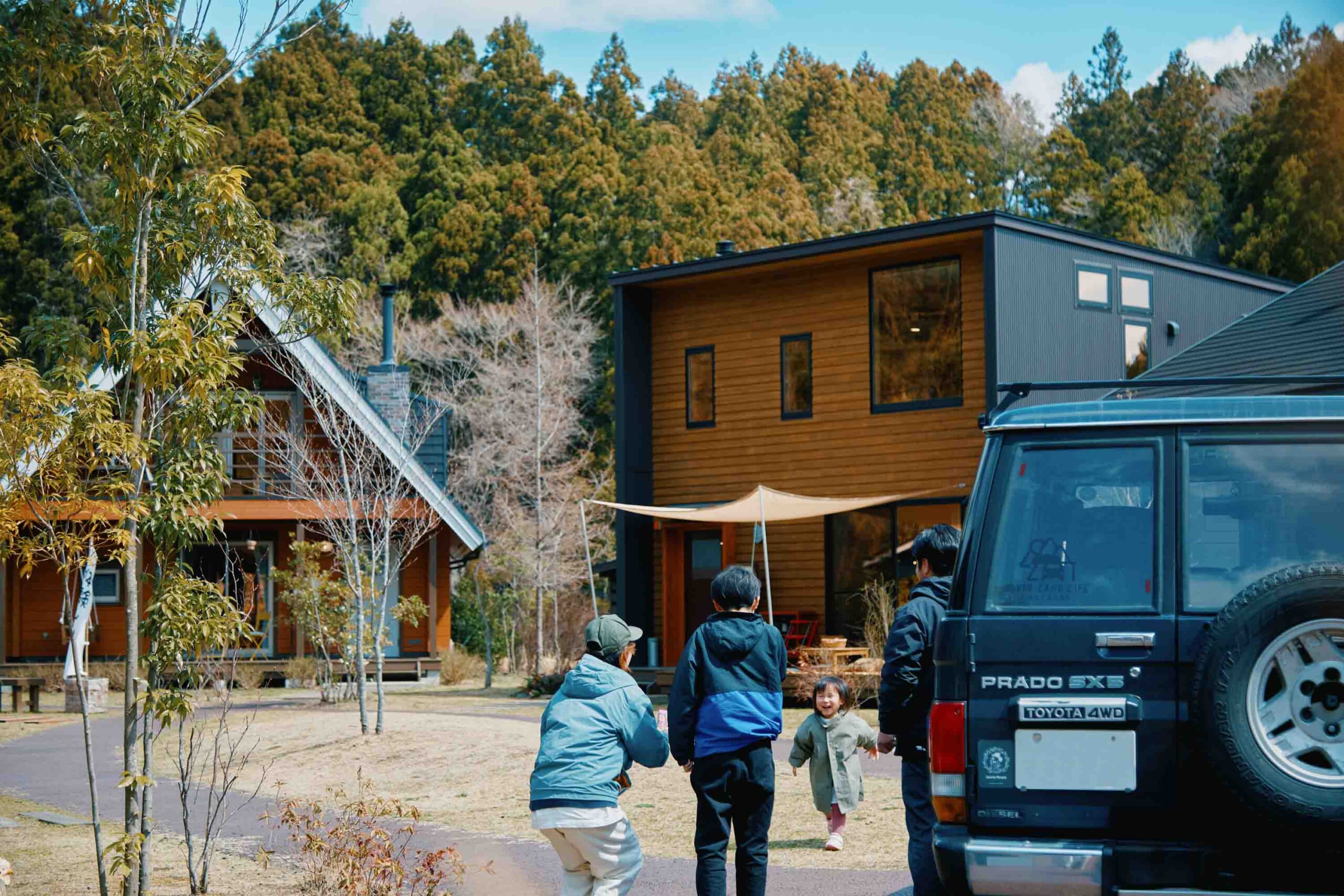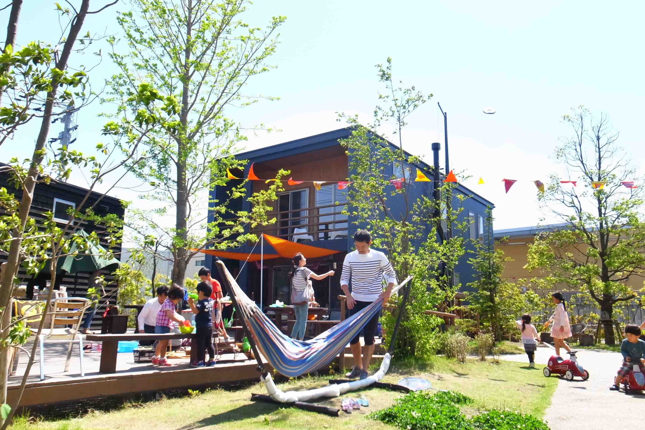 “LOGWAY BESS仙台”は、モデルハウスの並ぶ敷地の中心に芝生スペースが広がり、まるで公園のような雰囲気。奥のスペースに建てられた、ライフスタイルに合わせて自由な使い方ができるログ小屋“IMAGO”に、大人も子どもも楽しめる様々なワークショップを用意。遊びながら気軽にログハウスでの暮らしを体験することができます。