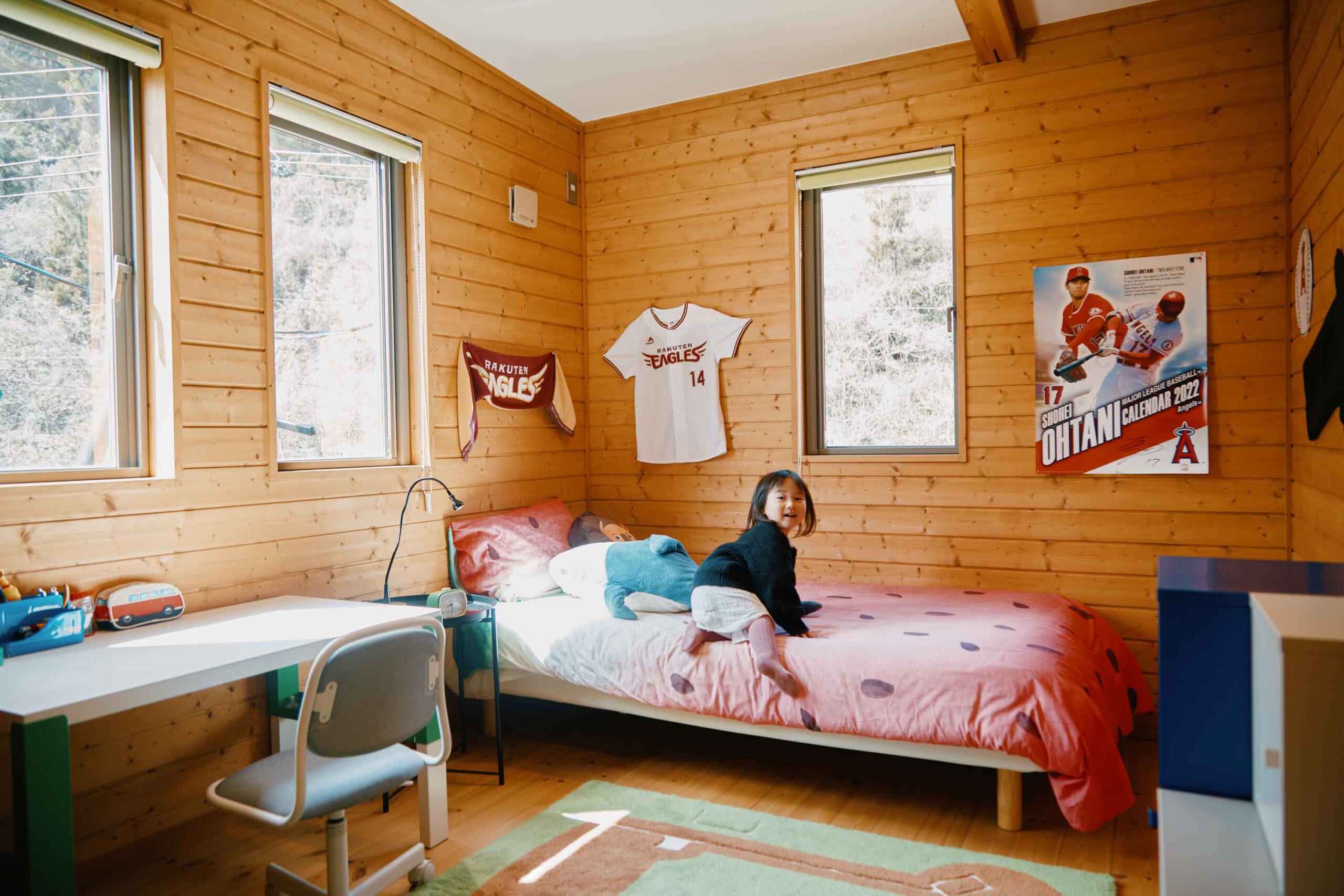 2階にも木の香りに包まれるひとつながりの空間が広がり、BESS独自の取り外しのできる壁“フューチャーウォール”を組み合わせると子どもの成長に応じて個室を設けることもできる。