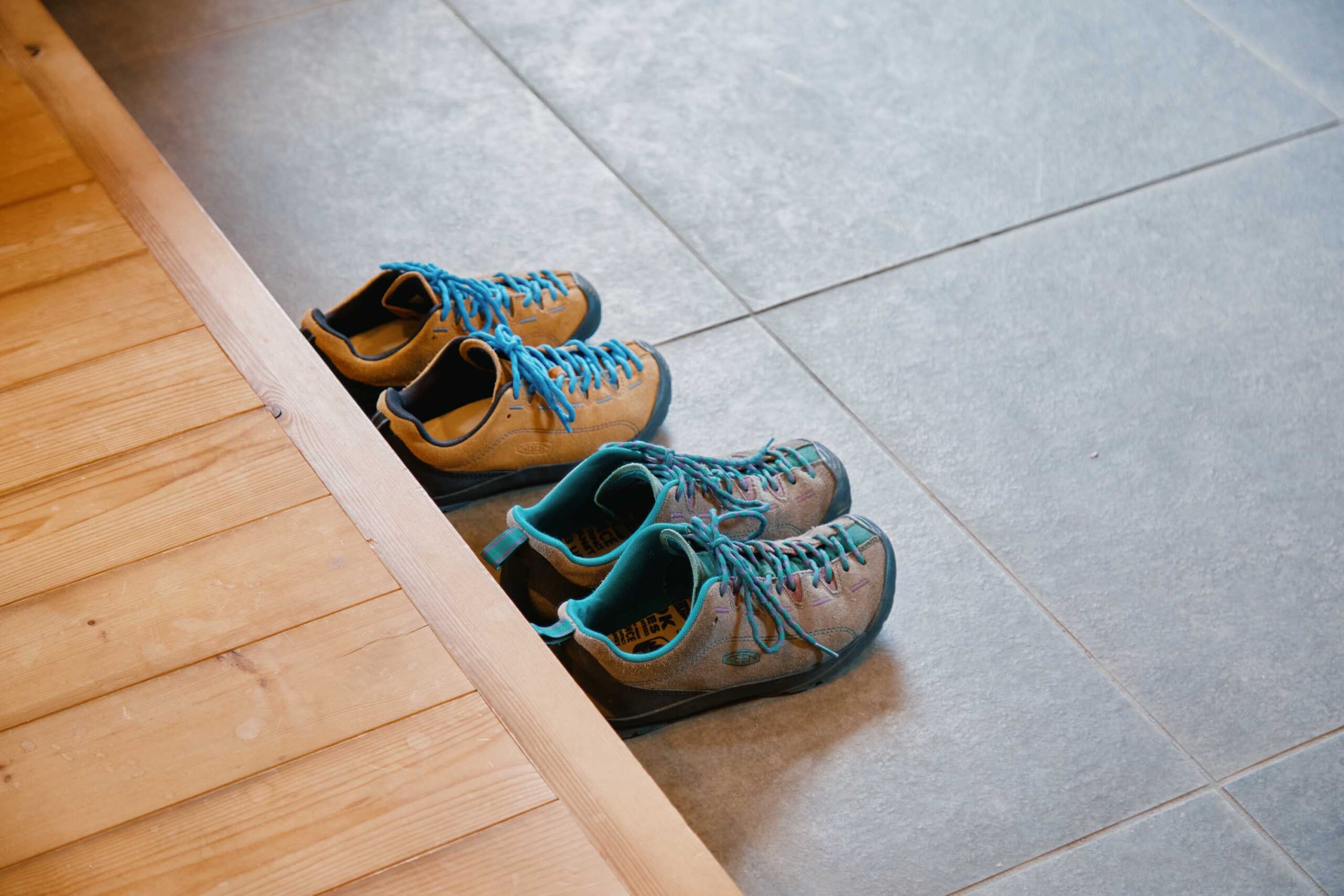 富永ファミリー一番のお気に入りだったのが、モルタルの土間が玄関にもなるワンダーデバイス。広い土間スペースは、大切なキャンプギアをメンテナンスできる作業台などの設置ができるなど暮らしに合わせてアレンジが楽しめる。「まるで秘密基地があるみたい!」と楓くんもお気に入りの様子。