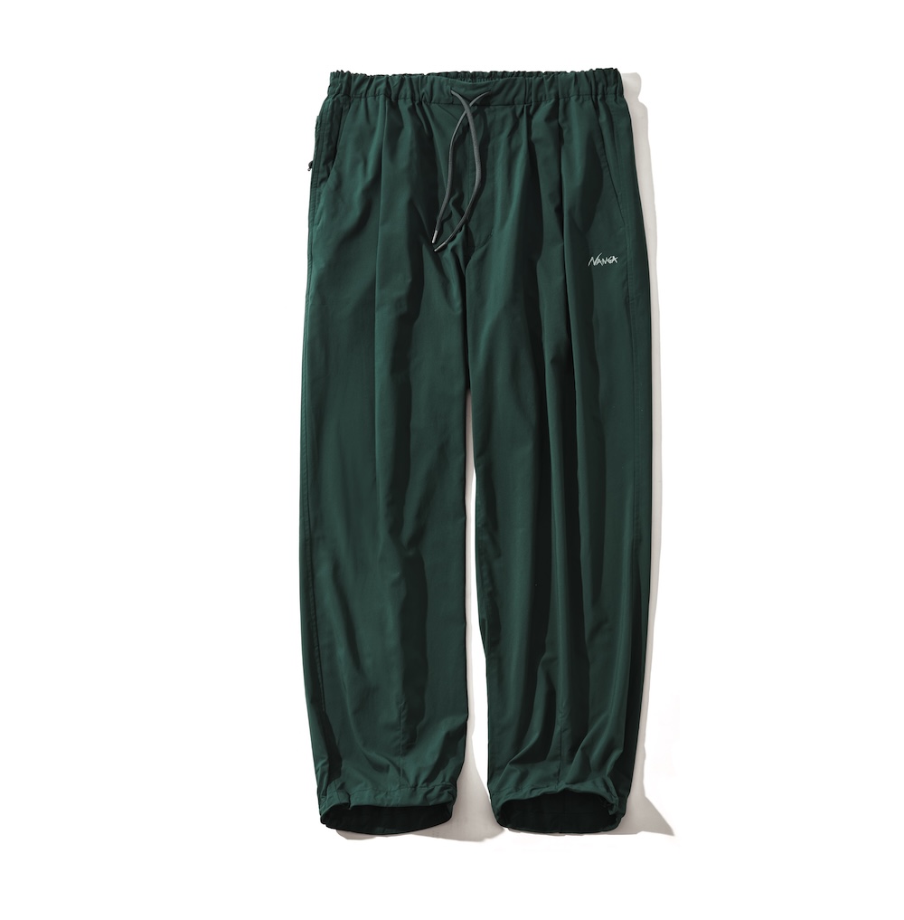 腰にワンタックが入ったワイドシルエットのイージーパンツは、PLCシリーズのトップスとセットアップで着こなしたいアイテム。ウエストと裾にスピンドルを備えているため、シルエットも調整できる。もちろんこちらもパッカブル仕様。