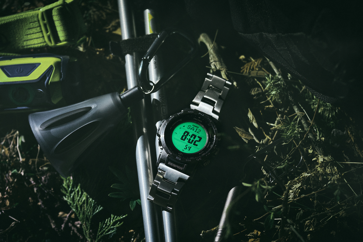 蓄光LCDを搭載したプロトレックの最新モデルは、フィールド対応の機能性に加え、夜間時の視認性まで高めた最強のアウトドアウォッチ。
