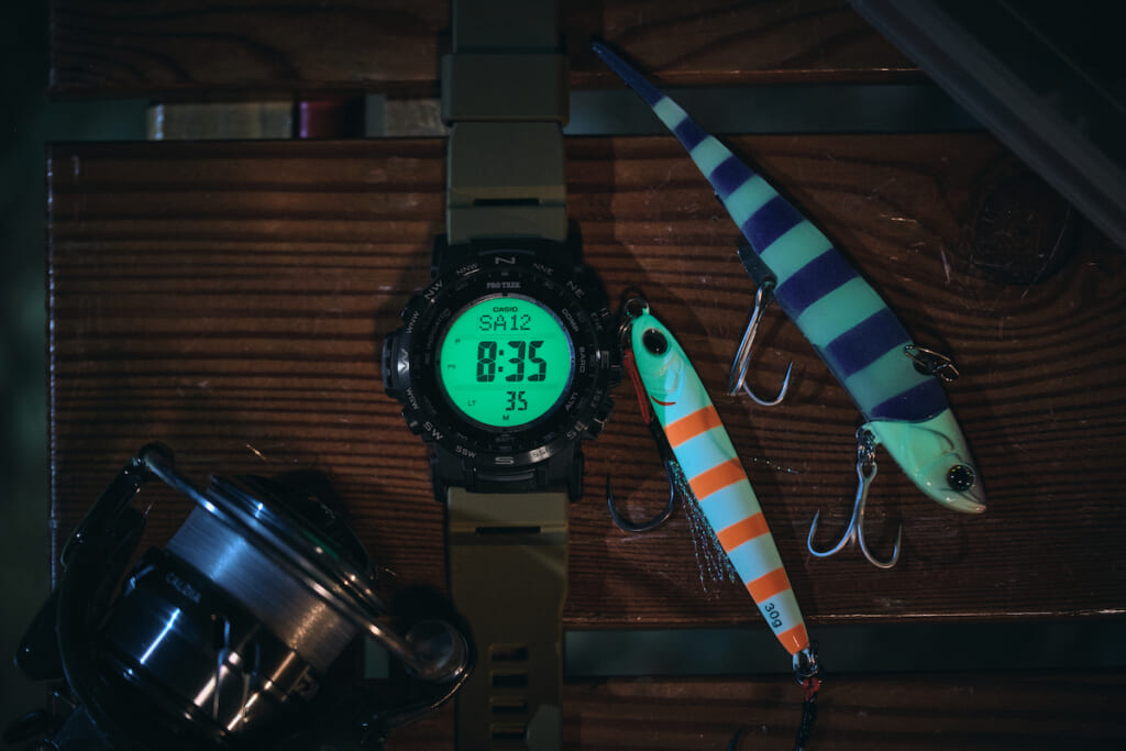 むしろ手が離せない状況が多い夜釣りこそ、暗闇で瞬時に時間をチェックできる“蓄光LCD”の真価が発揮されるかも?