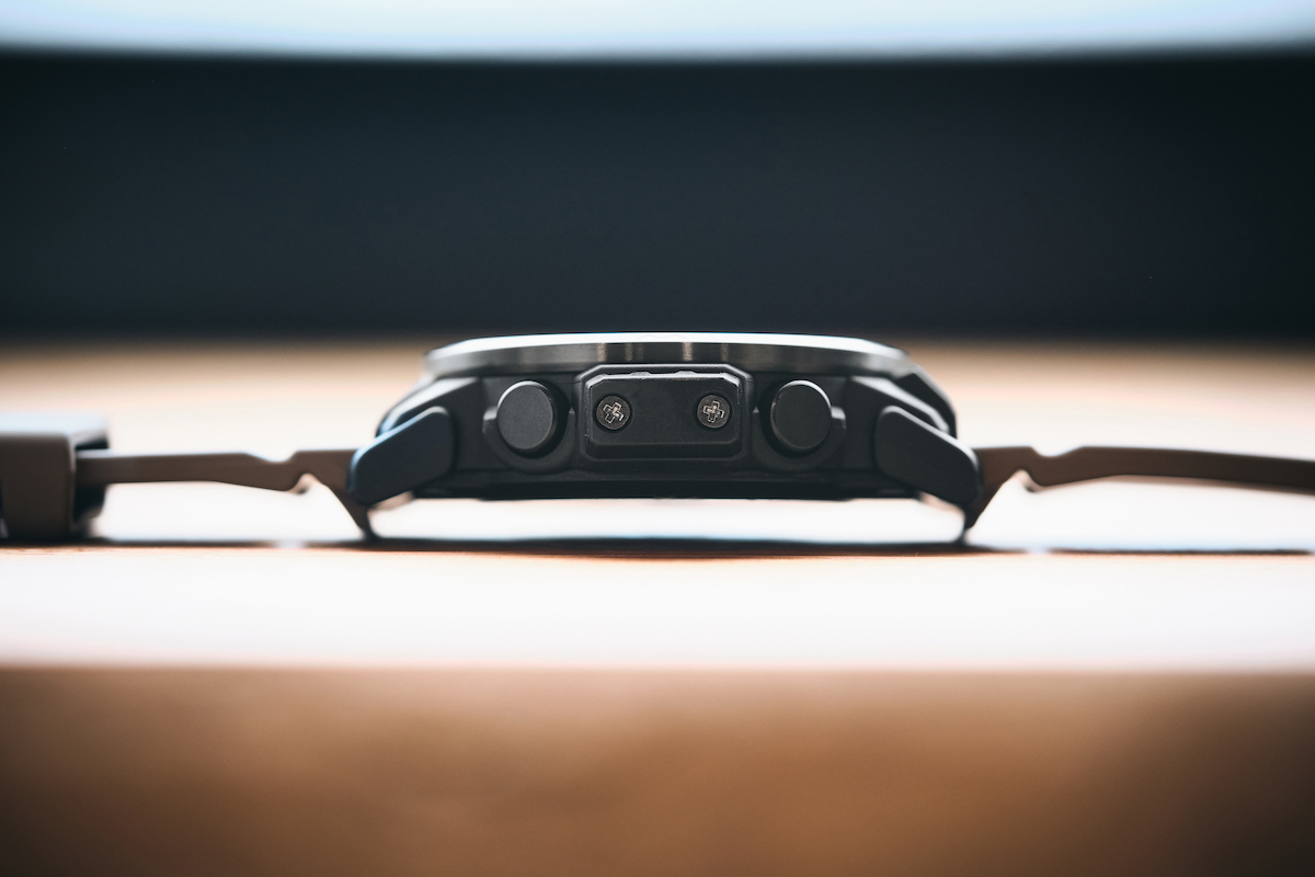 さらに実際に着用して感じたのが、ルックスはゴツいけど薄いってこと。なんと厚さが13mmしかない。“ソーラー充電システム”や“登山記録データ”、“気圧差インジケーター”など、さまざまな機能を搭載しながら、この薄さは驚くばかり。