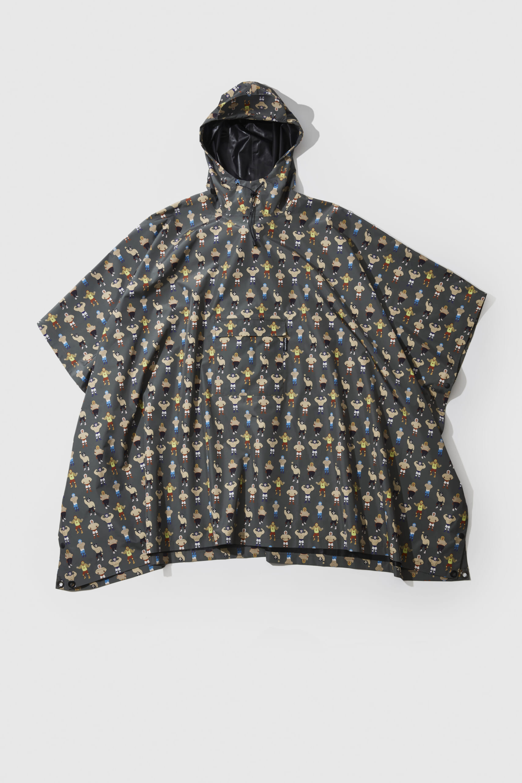 雨も楽しい総柄「レインポンチョ」が、親子リンクコーデもできるように。