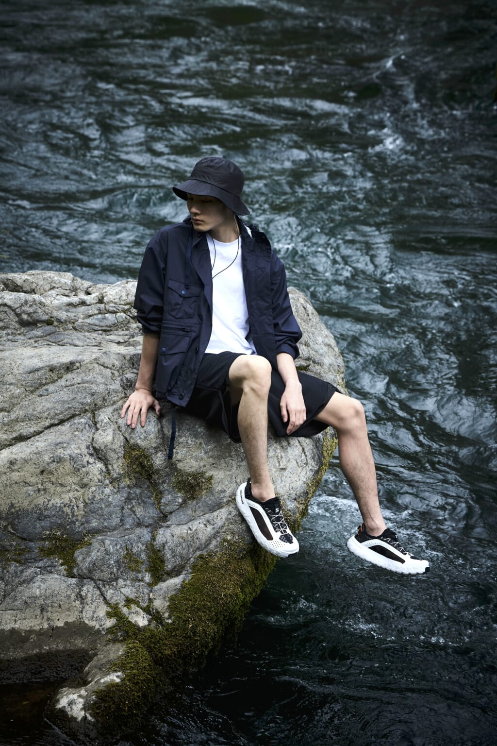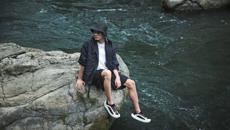 シューズ:ソランフィビアン¥17600/サロモン(サロモン コールセンター) ジャケット¥49500/ジュゲム(ヘムトPR) ショーツ¥23100、ハット¥14300/ともにミーンズワイル(ミーンズワイル) その他スタイリスト私物