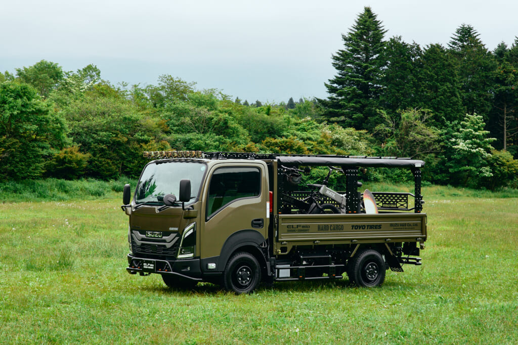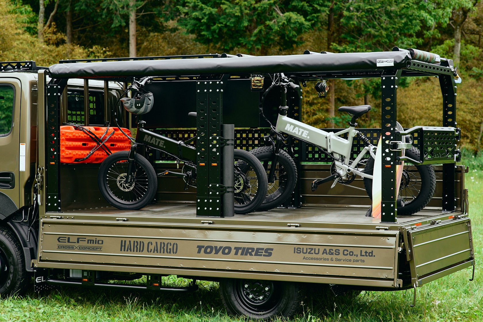 「だれでもトラック」のキャッチフレーズで話題の小型トラック「ELFmio」を、仕事でも遊びでもとことん使える仕様に仕上げたコンセプトカーだ。スチールフレームを使った荷台が特長で、職人さんが平日は仕事でハードに使って、週末には趣味の道具を積んでそのまま遊びに行くことをイメージしてカスタムしていて、トラックのカスタマイズの可能性を感じる一台になっている。