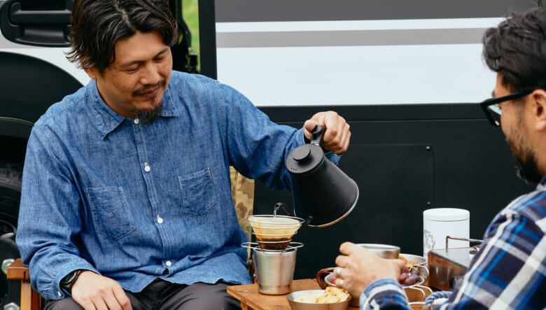 テント泊に比べて設営や撤収に時間がかからないキャンピングカーは、のんびりくつろぐ時間が長く取れるのも大きな魅力。時にキャンプ場で、時にサーフィン後の海辺で。景色の良い場所にクルマを止めてカーサイドで過ごすリラックスタイムは田島さんにとっても欠かせない時間だ。