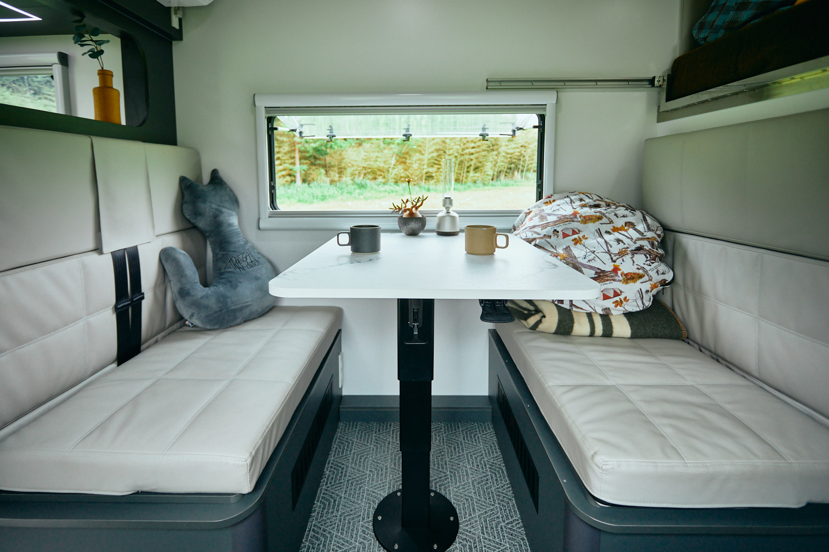 今回、田島さんと神保さんが体験した「エクスペディション ストライカー」は、いすゞのキャンピングカー専用シャシ「トラヴィオ」をベースにしているので、普通免許・AT限定免許でも運転できて、取り回しの良さ、運転のしやすさはまるで乗用車。さらに全長4955mm、全幅1800mmとワンボックスカーと変わらないサイズ感なので、高さ制限のない平置き駐車場であれば、駐車場所に困ることもない。車中泊の究極形ともいえる憧れのキャンピングカーをグッと身近なものにしてくれるクルマと言えそうだ。