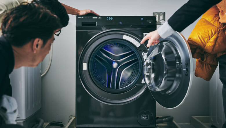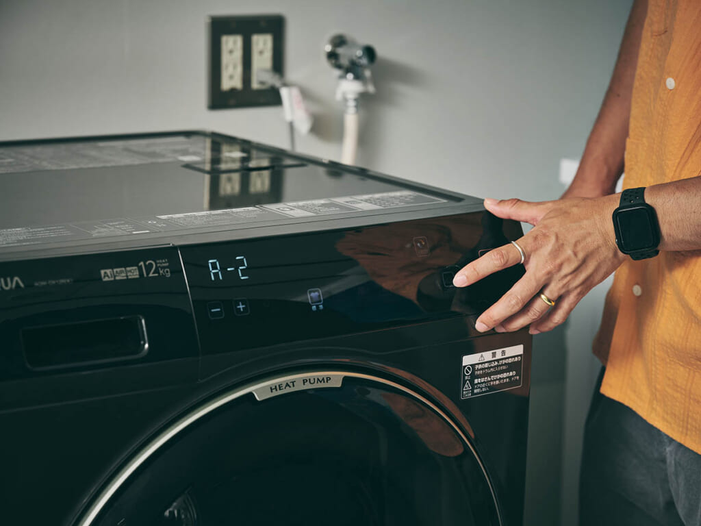 今回、洗濯ブラザーズとナンガ米澤さんが体験したドラム式洗濯乾燥機は、AQUAの「AQW-DX12R」。