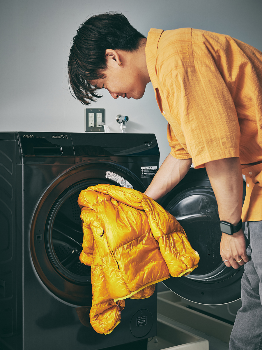 洗濯のプロもダウンブランドPRも驚いたAQUAのドラム式洗濯乾燥機とその機能「エアウォッシュ」。ウエアについてしまった匂い対策や、ダウンのふっくら感アップ、はっ水性能の回復など、アウトドアウエアに関する悩みをボタン1つで気軽にケアできるのは大きな魅力と言えそうだ。