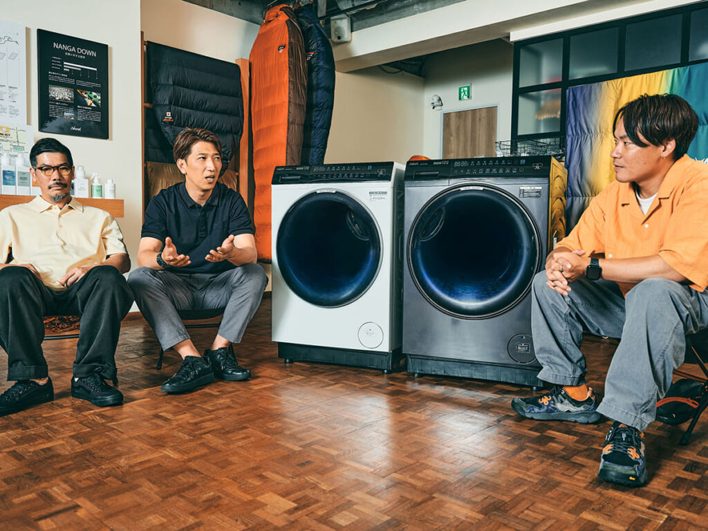 今回は、「洗濯ブラザーズ」として活動する洗濯のプロフェッショナル、茂木貴史さん・康之さん兄弟と、ダウンウエアに詳しいNANGA(ナンガ)のPR米澤創さんが、家庭でできるアウトドアウエアの洗濯のイロハについてざっくばらんに対談。