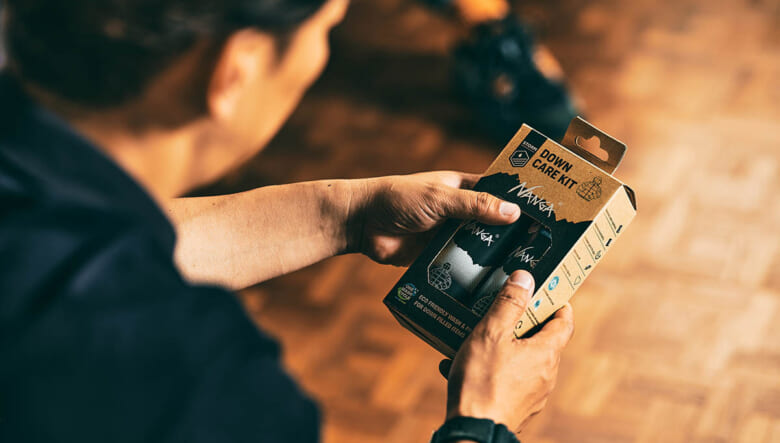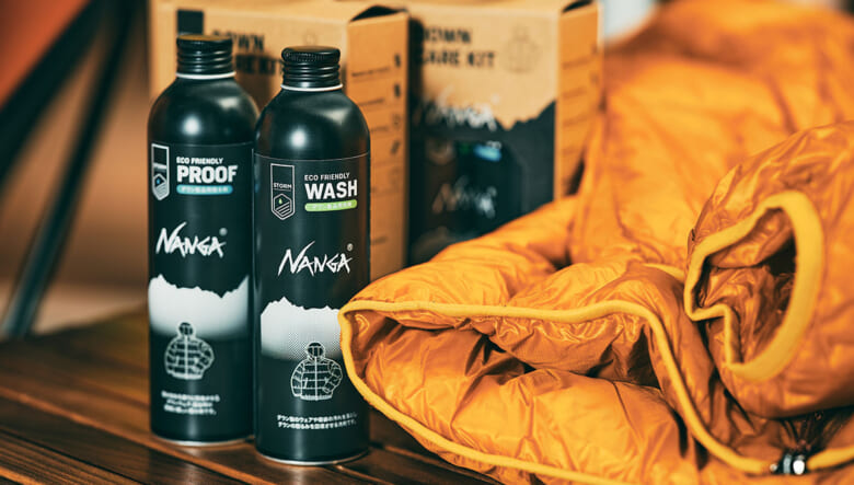 米澤「洗剤と言えば、実はナンガでも家で気軽に洗ってほしいのでダウン製品専用の洗剤とはっ水材を販売しています。イギリスのアウトドア専用ケアキット“ストーム”とコラボしたものなんですが、普通の洗剤と同じように使えるので、気軽にお手入れしてもらえればうれしいです。ナンガのユーザーさんで寝袋を20年近く使ってくださっている方がいましたが、ダウン製品はしっかりお手入れしていればそれくらい使えるものですので」