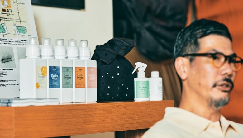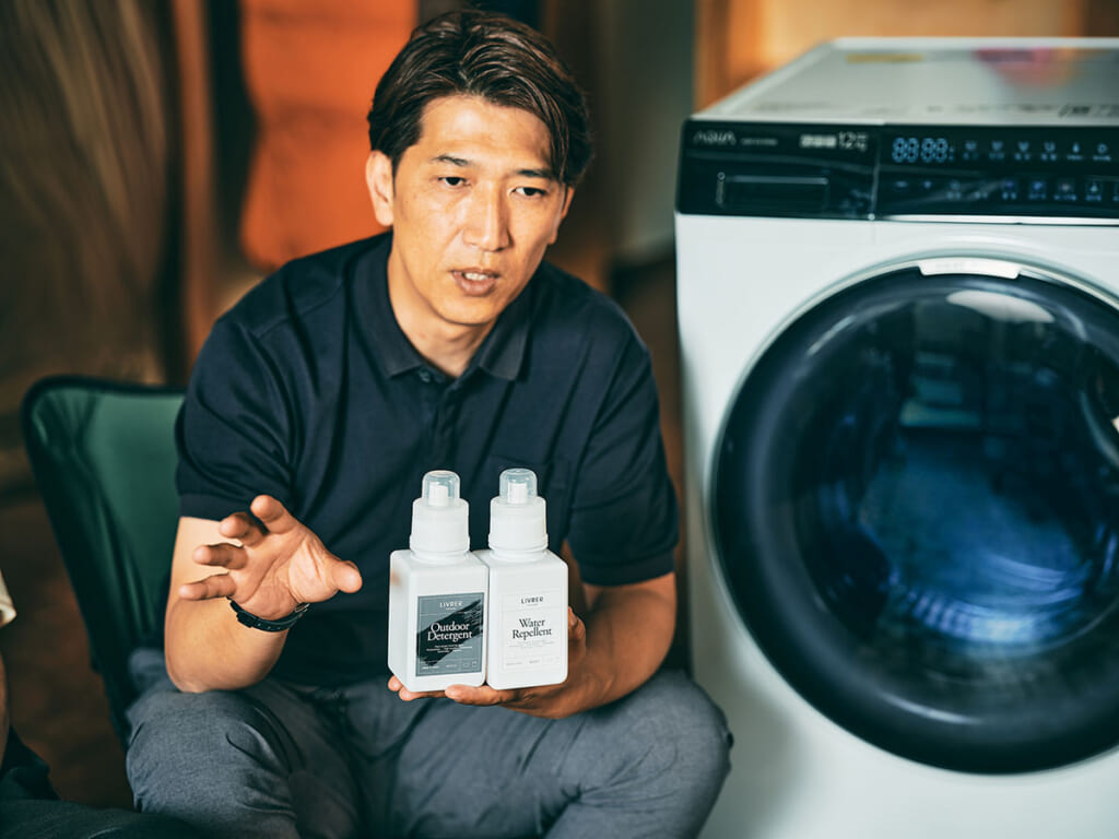 康之「洗濯ブラザーズでは、ゴアテックスなどのアウトドアウエア全般に使える専用洗剤と、はっ水材を出しています。衣類に優しい“中性洗剤”なんですが、使い方は普通の洗剤と同じです。シームテープが劣化して剝がれてしまわないように余計なものは一切入れていません。はっ水剤はすすぎの時に投入してください。最後に乾燥機で乾燥させると、はっ水性能を回復させることができます」
