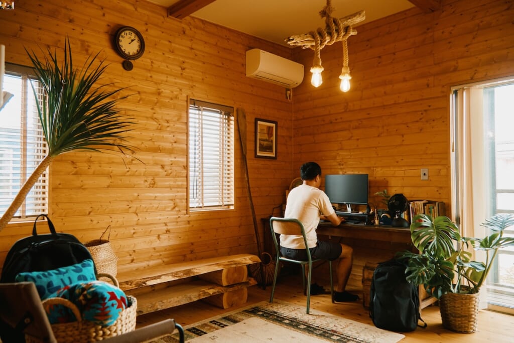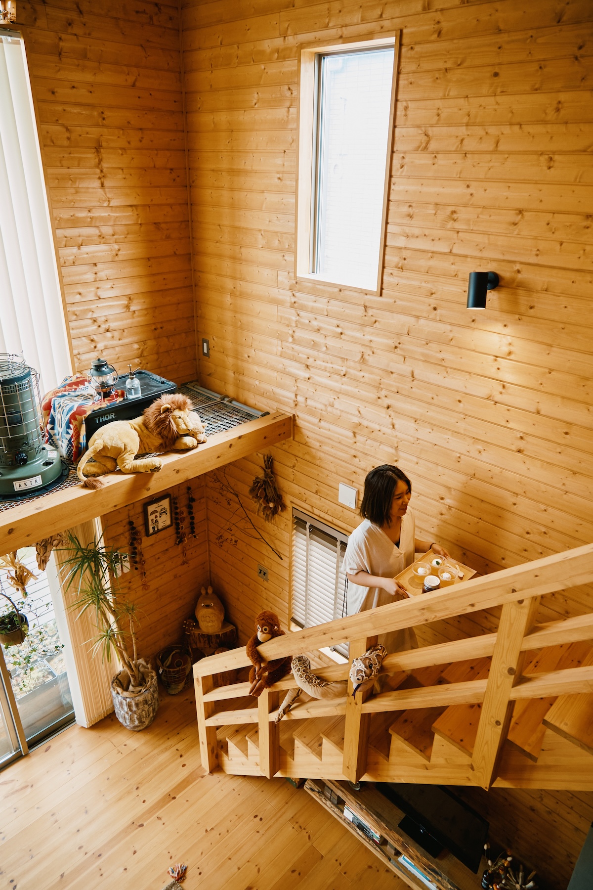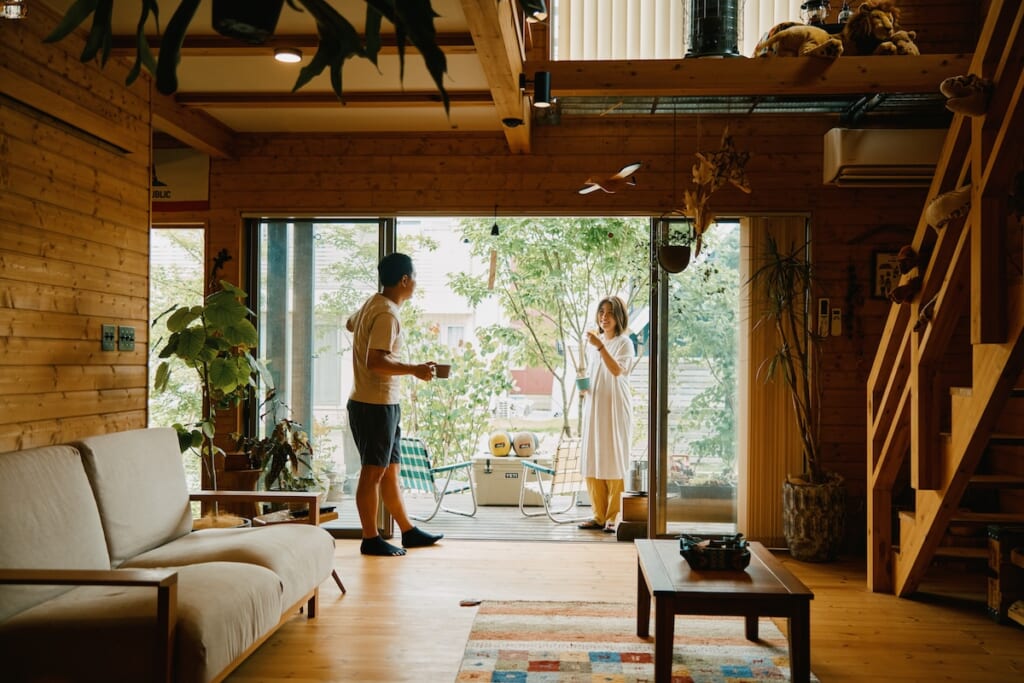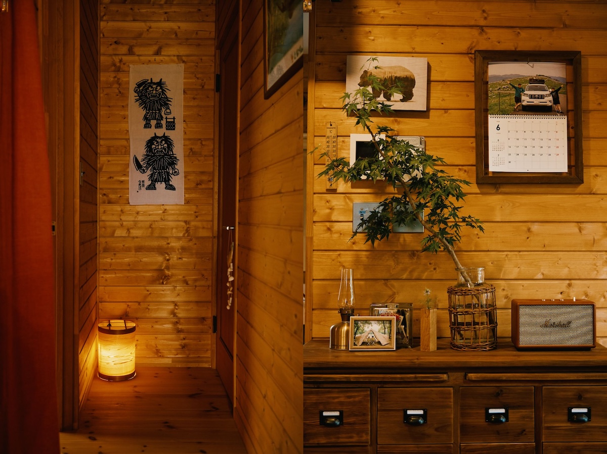 「シンプルな無垢材に囲まれたワンダーデバイスは、ジブンたちの好みに合わせて室内を自在にアレンジできるのが魅力。お気に入りの家具や、旅先でひと目惚れした小物を少しずつ増やしています。意外と民芸品とかも馴染むんですよ」(聡さん)