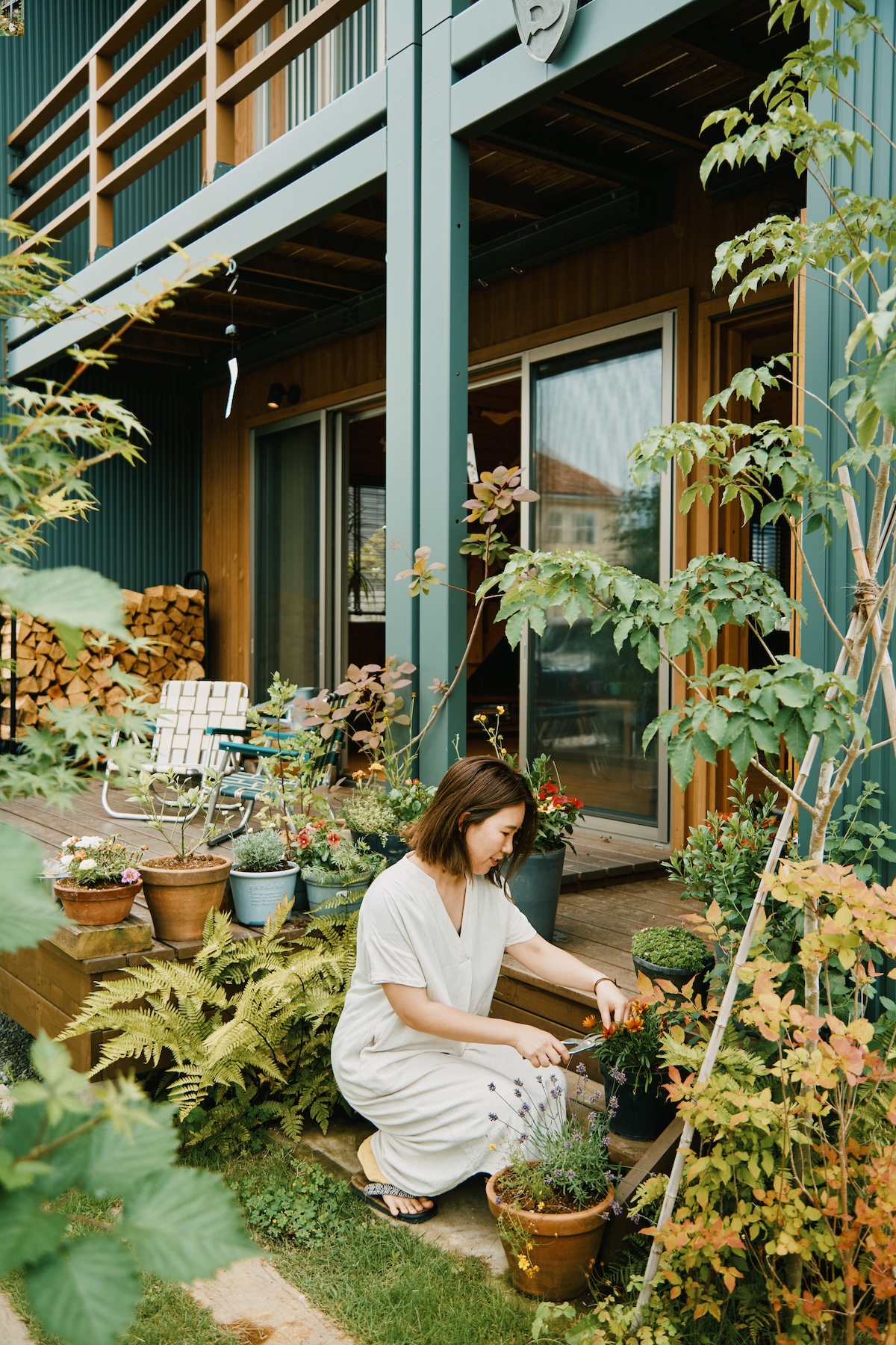 DIYやクルマが趣味という聡さんに対して、沙也香さんの趣味はガーデニングとスイーツ作り。ウッドデッキに隣接する庭スペースや玄関まわりには、イロハモミジやアオダモ、マルバノキ、ナツハゼなどを植栽。