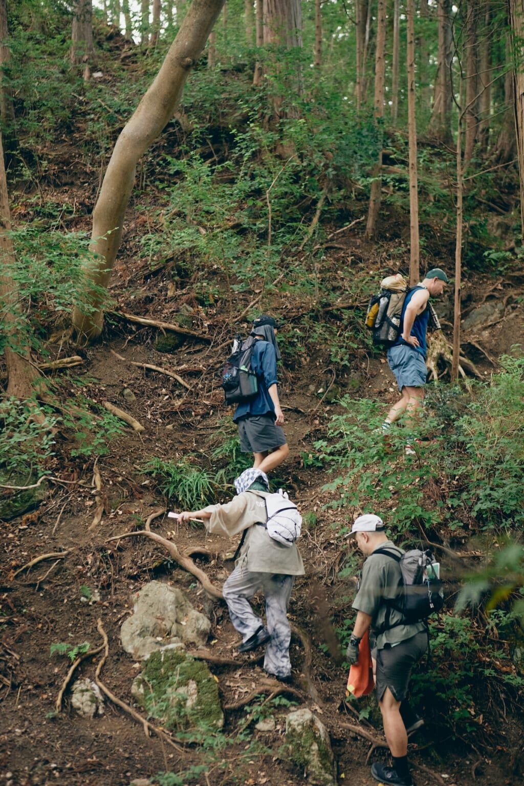 さらに、急勾配のつづら折りもあり、グイグイ登っていく。もはや遊歩というより登山状態で、あまりの険しさに、ちょっと後悔してそうな4人。しかし、いまさら戻るわけにもいかず、黙々と登っていく。