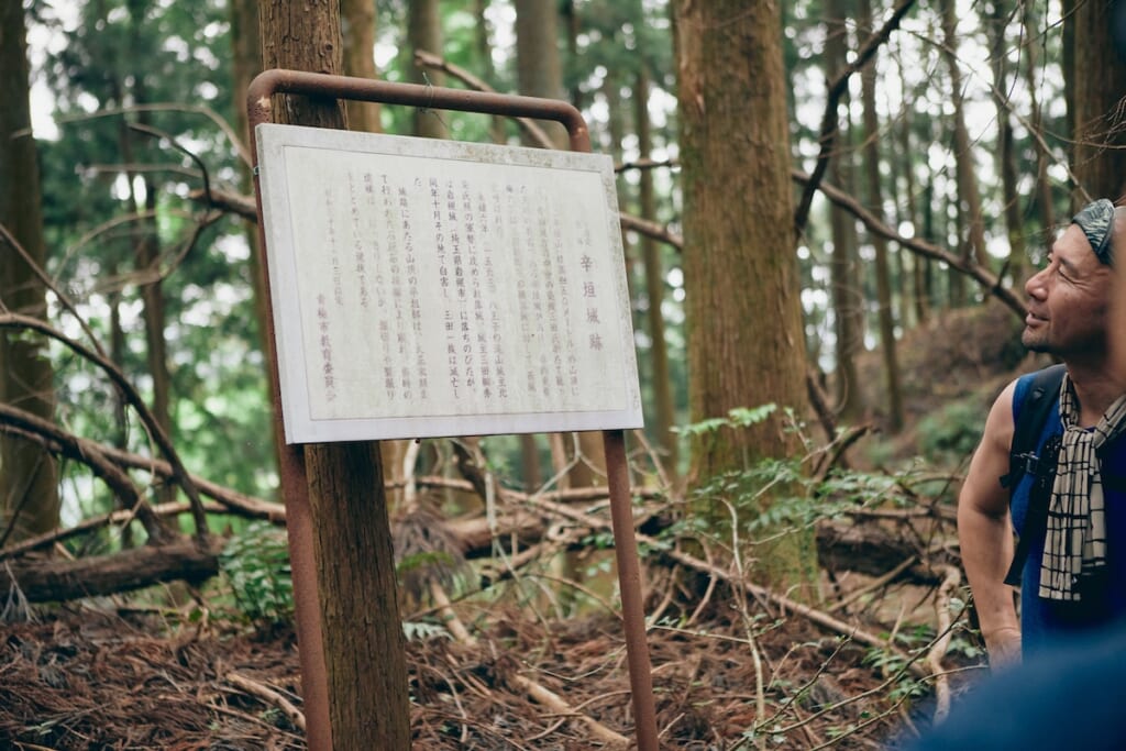 すると、目の前に「辛垣城跡登り口(急坂)」という、ちょっと気になる道標が登場。どうやらコース本線とは異なる、寄り道ルートがあるらしい。