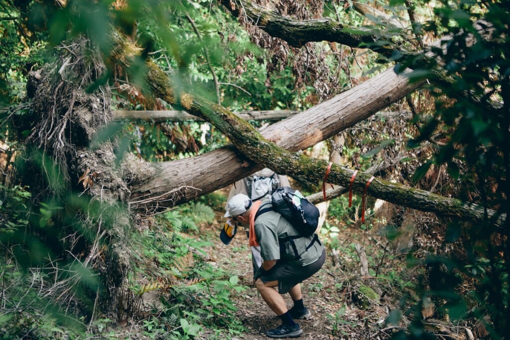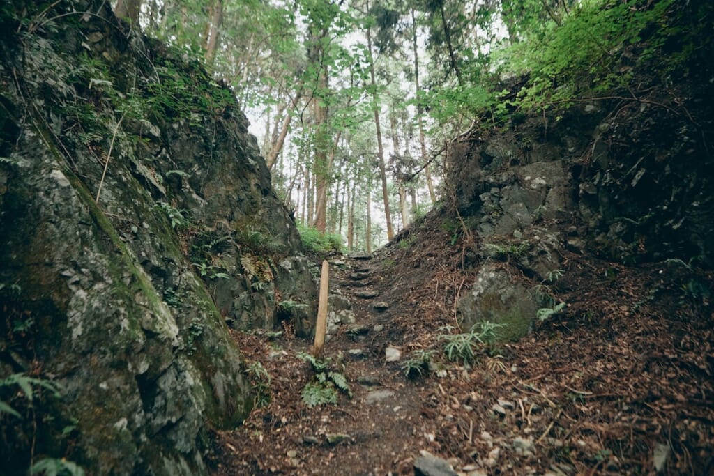 再び険しい山道を歩き、ハイキングコースのメインルートに合流。あまり変わり映えしない景色が続くなかで、アクティビティ的に楽しめる城跡コースは、ちょっとしたアクセントになったかも?