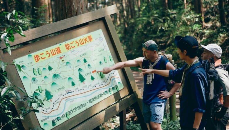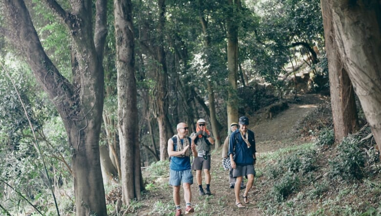 雷電山の山頂で休憩して体力を回復した4人は、ハイクコースを順調に進んでいく。大自然のなか、遠くから聞こえてくるのは鳥のさえずりくらいで、静かでゆっくりとした時間が流れている。