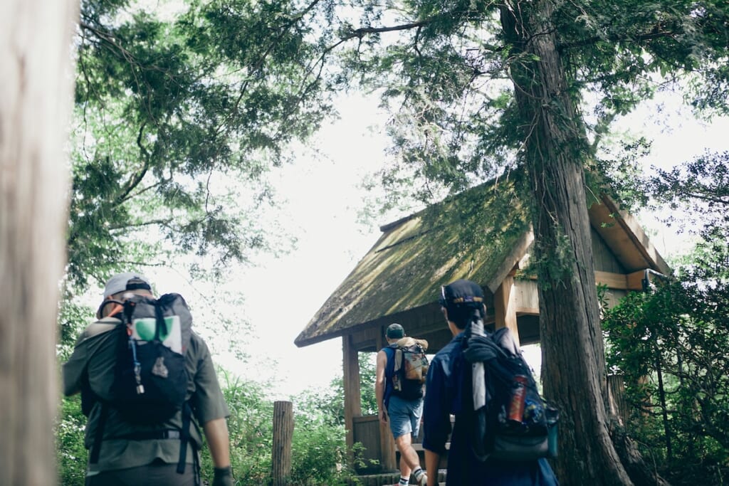 ということで、風通しがよくて涼しい東屋で休憩しつつ、行動食でエネルギーを補給することに。