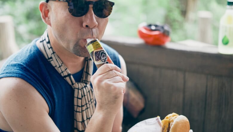 大桃「ジブンはチーズバーガーが衝撃でした。今度、山に持って行こうと思います。あと、ボクも扇子か団扇が欲しい(笑)」