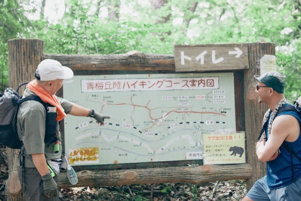 ということで、青梅駅の近くにある居酒屋「やきとり銀嶺」を目指して、全長10kmほどの「青梅丘陵ハイキングコース」を歩いている4人。