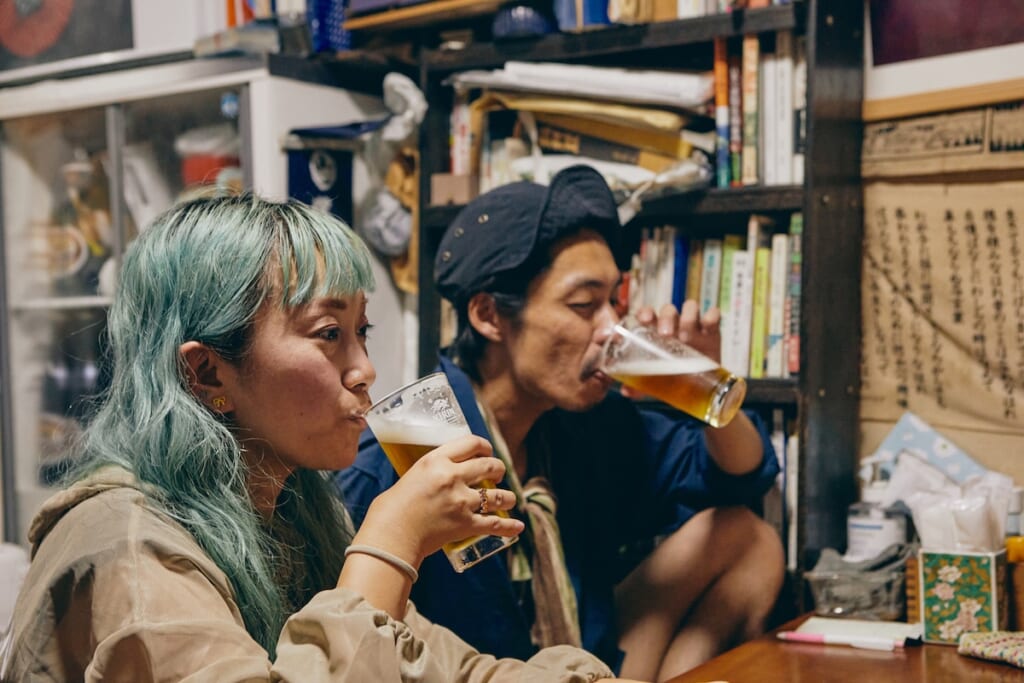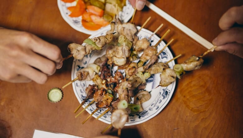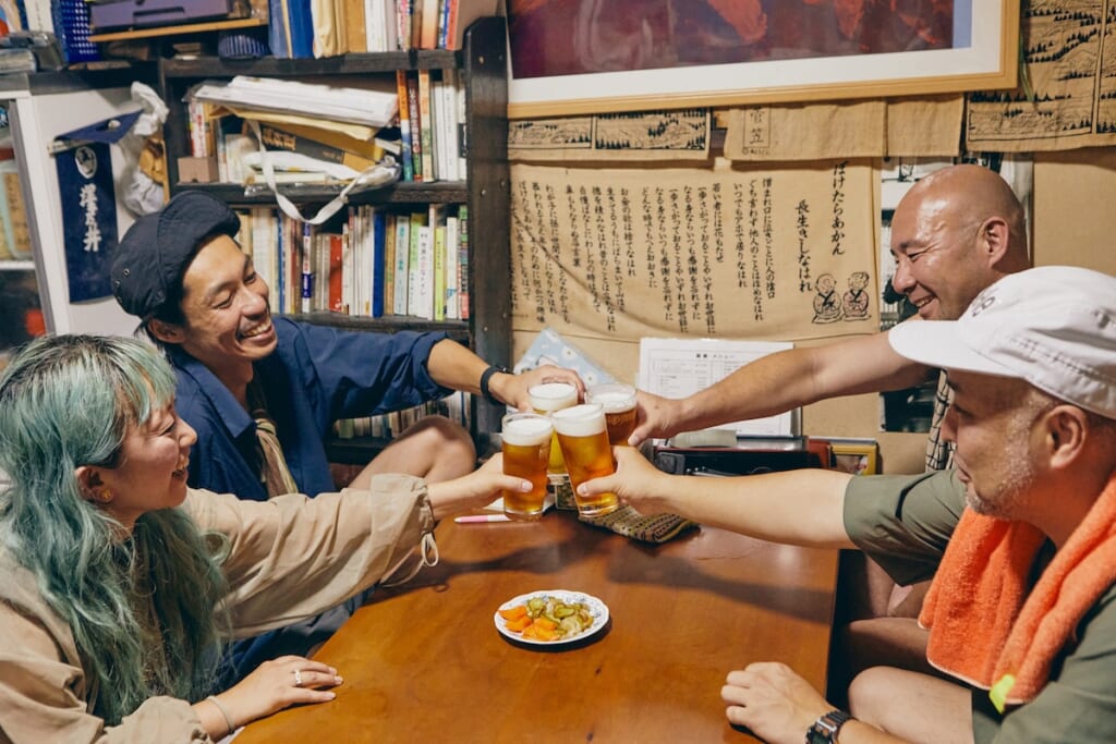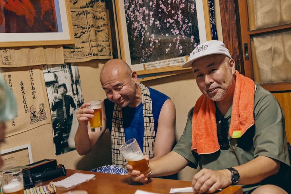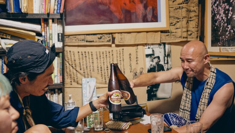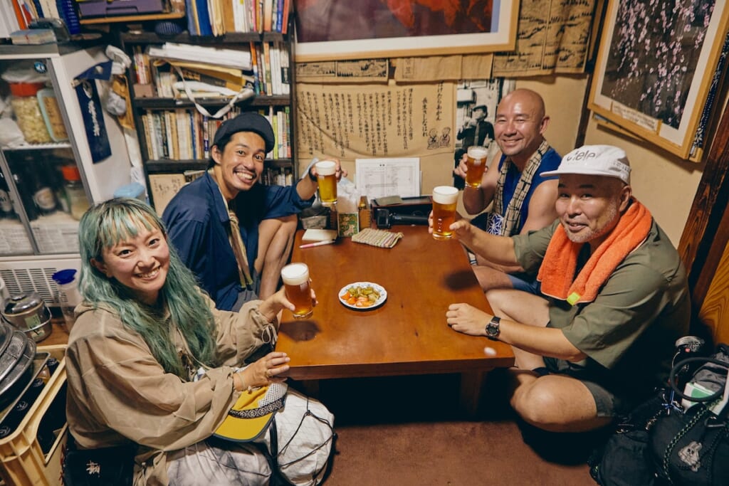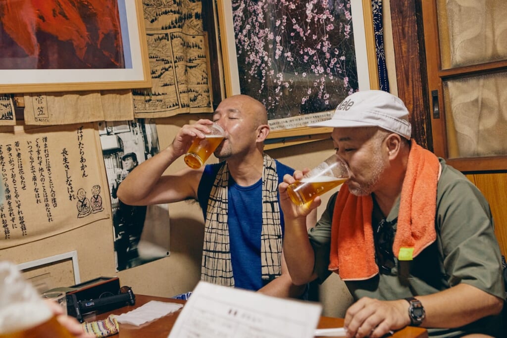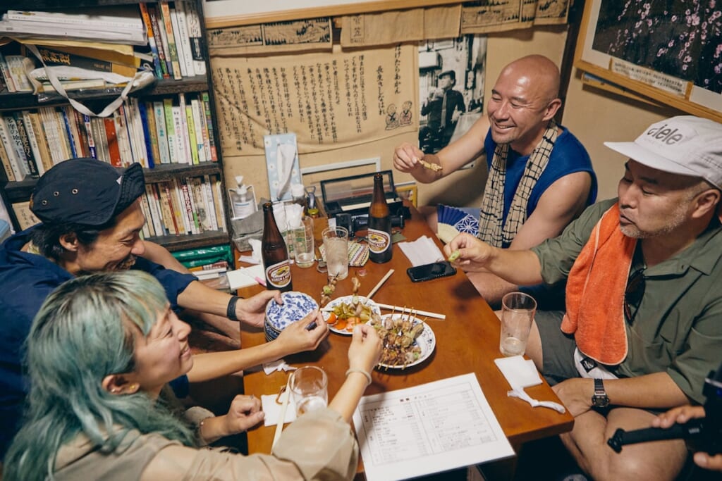 名物料理のやきとりを堪能しつつ、今度は瓶ビールをハイスピードで空けていく4人。そしてほろ酔いのなか、今回の遊歩を振り返ってもらった。