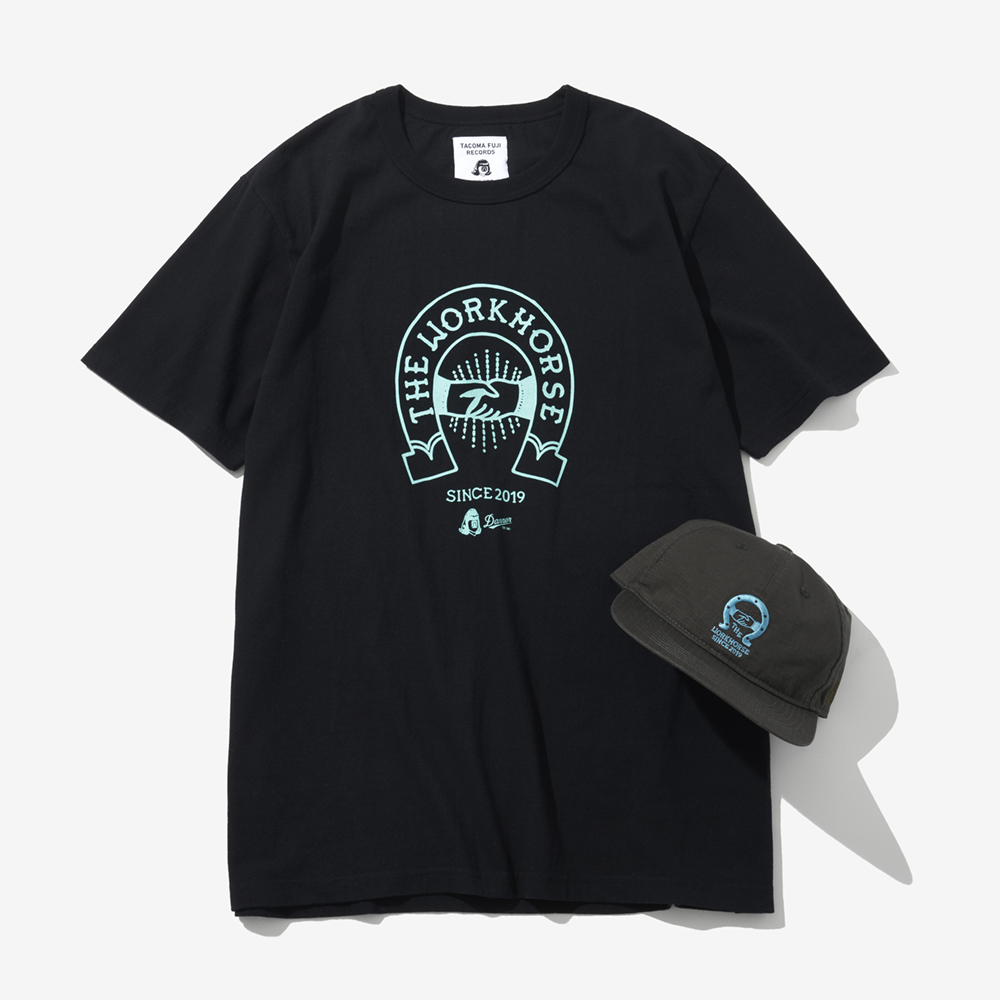 ブーツと同時にTシャツとキャップも製作。初回コラボ時と同様、架空のストーリーを背景にした「WORKHORSE」をもとに、ジェリー鵜飼氏が手がけたアートワークを新しいデザインに落とし込んだもの。