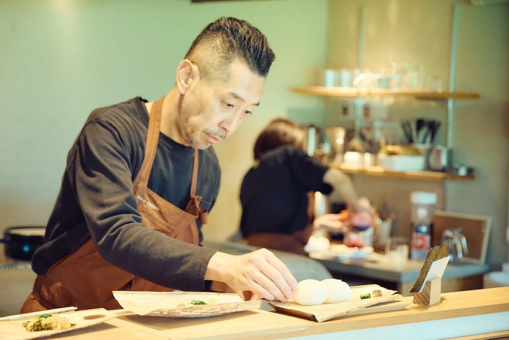関農園が作るお米は、6年連続日本一に輝いた実績がある。ここでは、そのお米を、手軽に塩むすびで味わえるのだ。土鍋で炊き、水分量をグラム単位で調整。ポテンシャルを最大限引き出した米は、ツヤツヤでモッチリ。