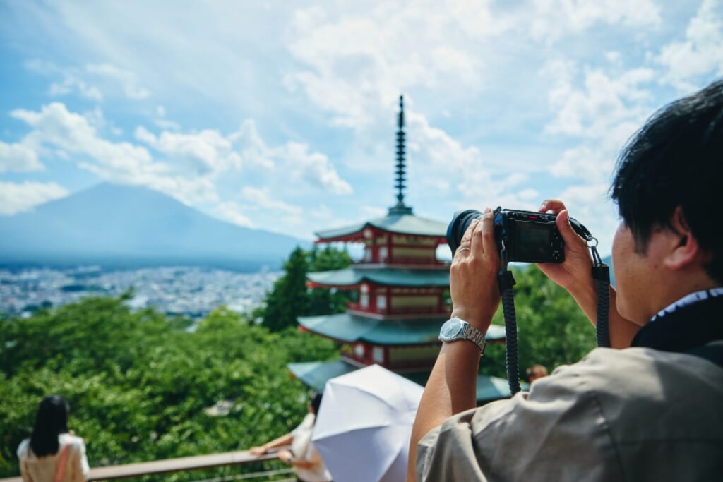 ツアーの締めくくりは、富士山と五重塔(忠霊塔)を同時に撮影できるという外国人にも人気のスポット、新倉富士浅間神社へ参拝。