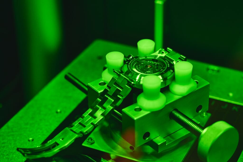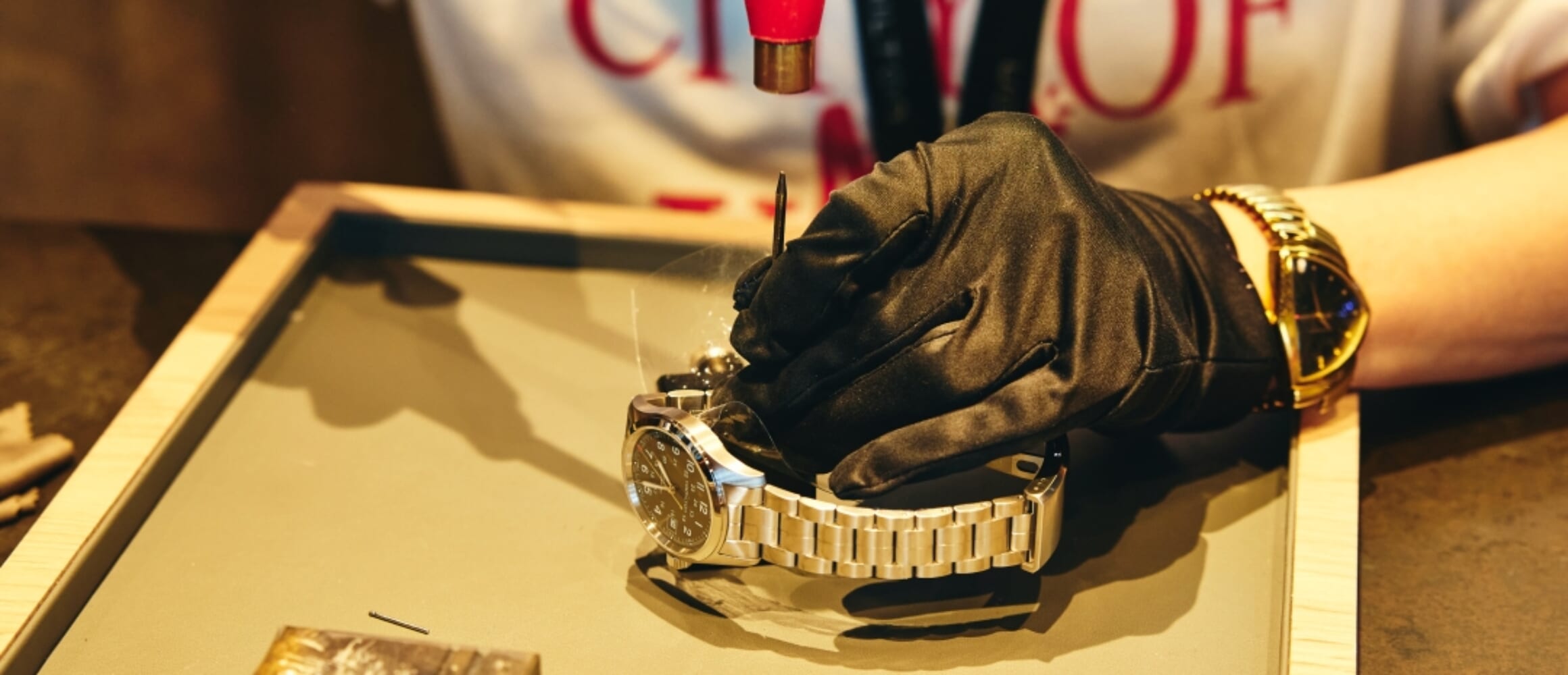まずはそれぞれ「カーキ」コレクションの時計を受け取り、フィッティング。レーザーによる名入れも行われました。刻印が始まって完了するまでの時間はわずか1分以内。旗艦店では、無料で名入れをすることが出来ます。