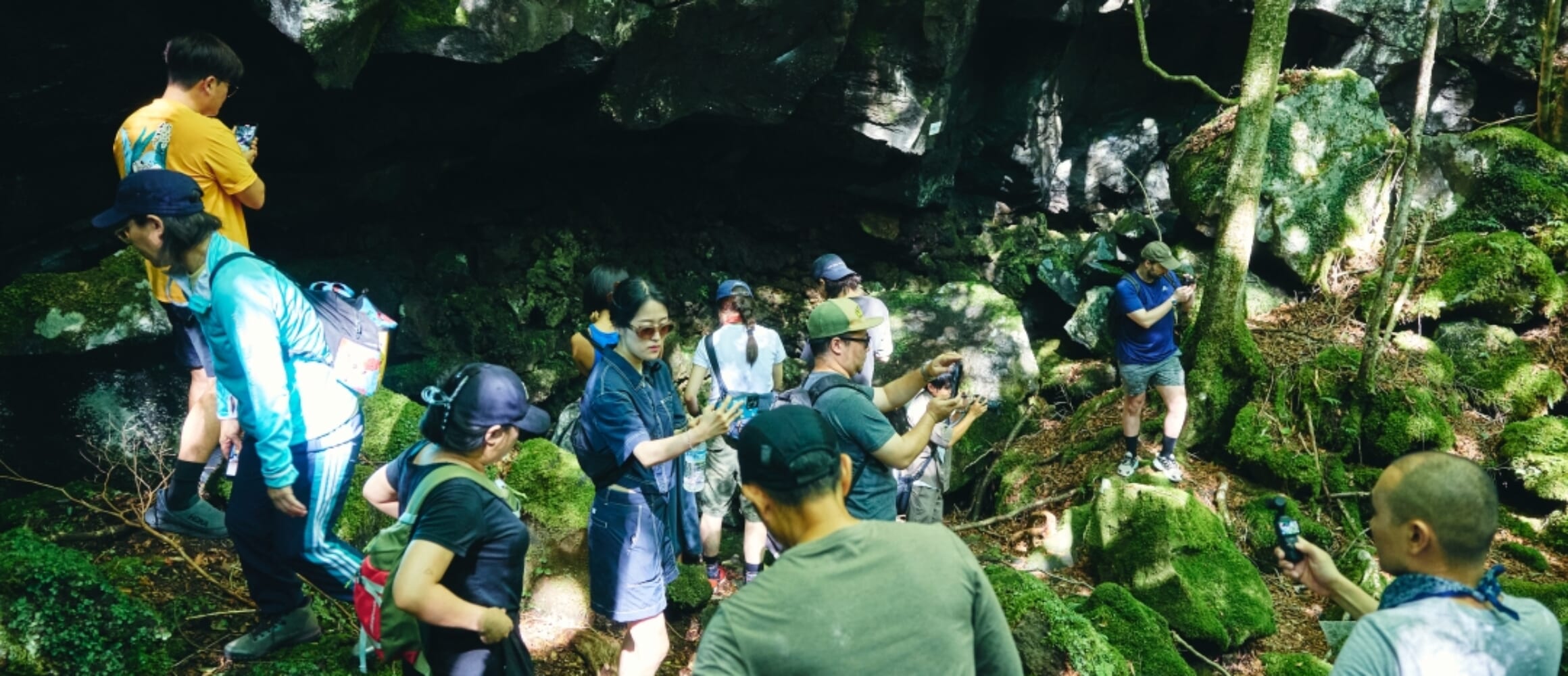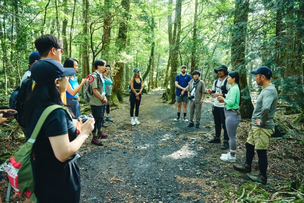 2日目は、ツアーガイドとともに、青木ヶ原樹海へハイキング。樹海と聞くと物怖じしがちですが、案内されたルートは、傾斜も少なく地面も歩きやすいコンディションでした。