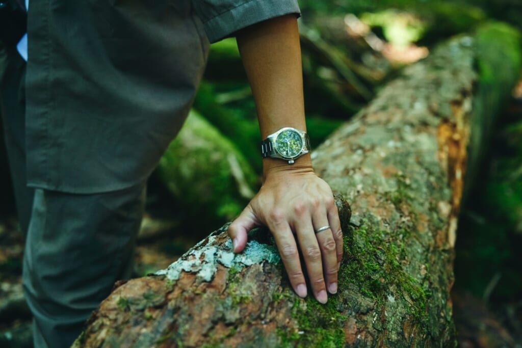 ステンレススチール製ケースや耐傷性サファイアクリスタル風防など、ハードな環境に耐える設計もこの時計の特徴。温度変化や衝撃にも強く、砂埃や湿気にも配慮した設計で、登山やキャンプ、トレッキングといった、アクティブなアウトドアシーンでもでもタフに使えます。