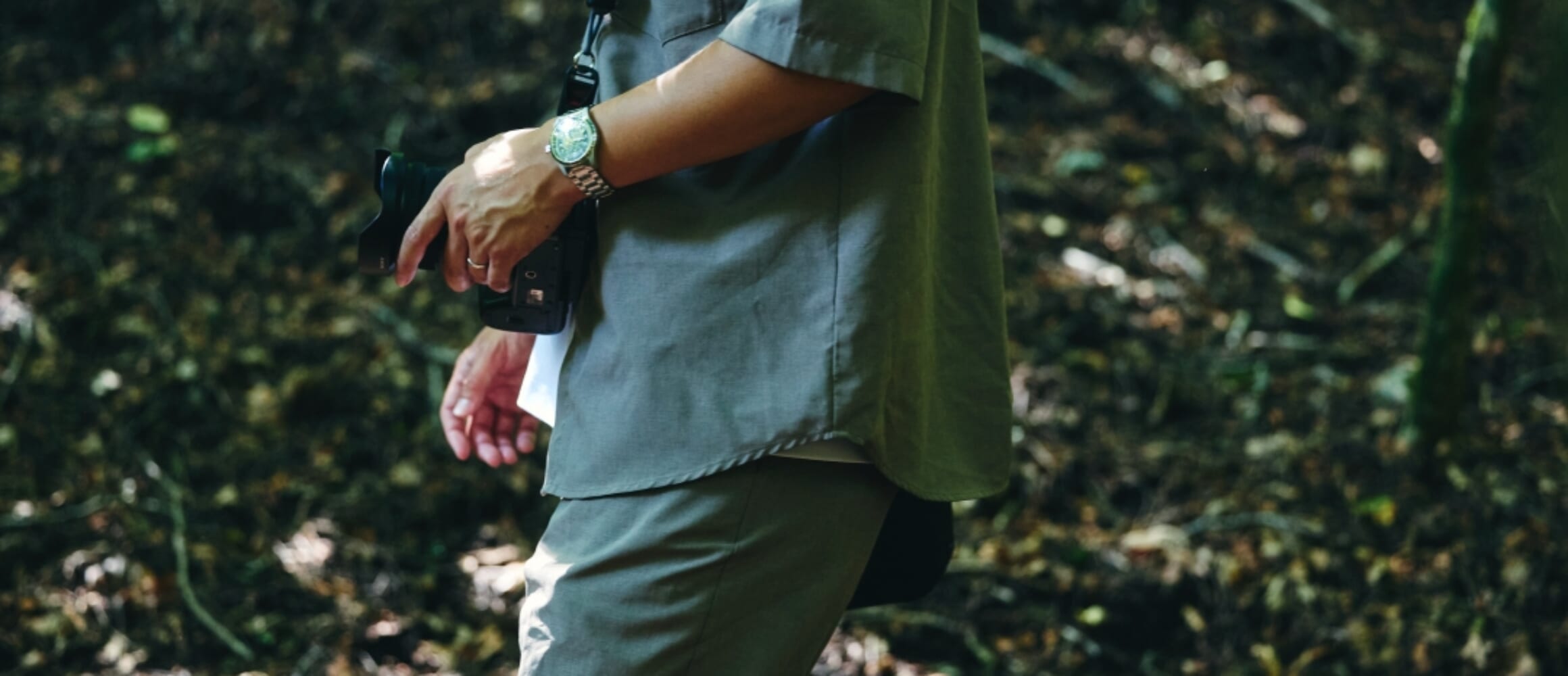 今回のツアーで、タナハシさんは「カーキ フィールド」を実際に着用し、さまざまなアウトドア体験をしつつ、その魅力を発信するためのコンテンツの撮影を行ないました。