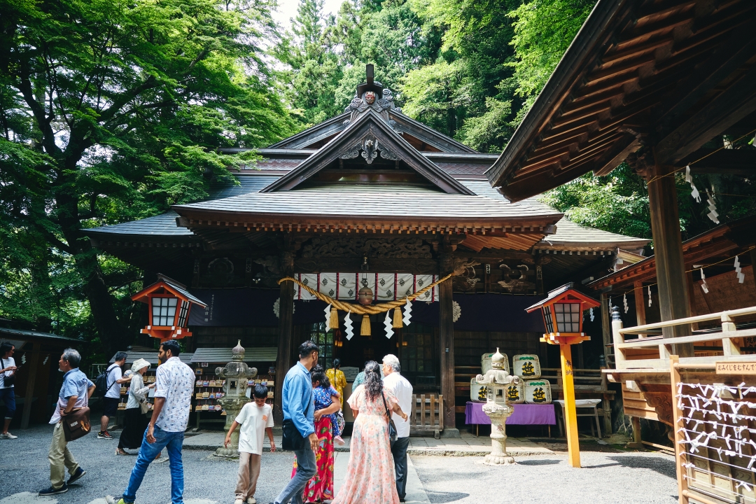 ツアーの締めくくりは、富士山と五重塔(忠霊塔)を同時に撮影できるという外国人にも人気のスポット、新倉富士浅間神社へ参拝。