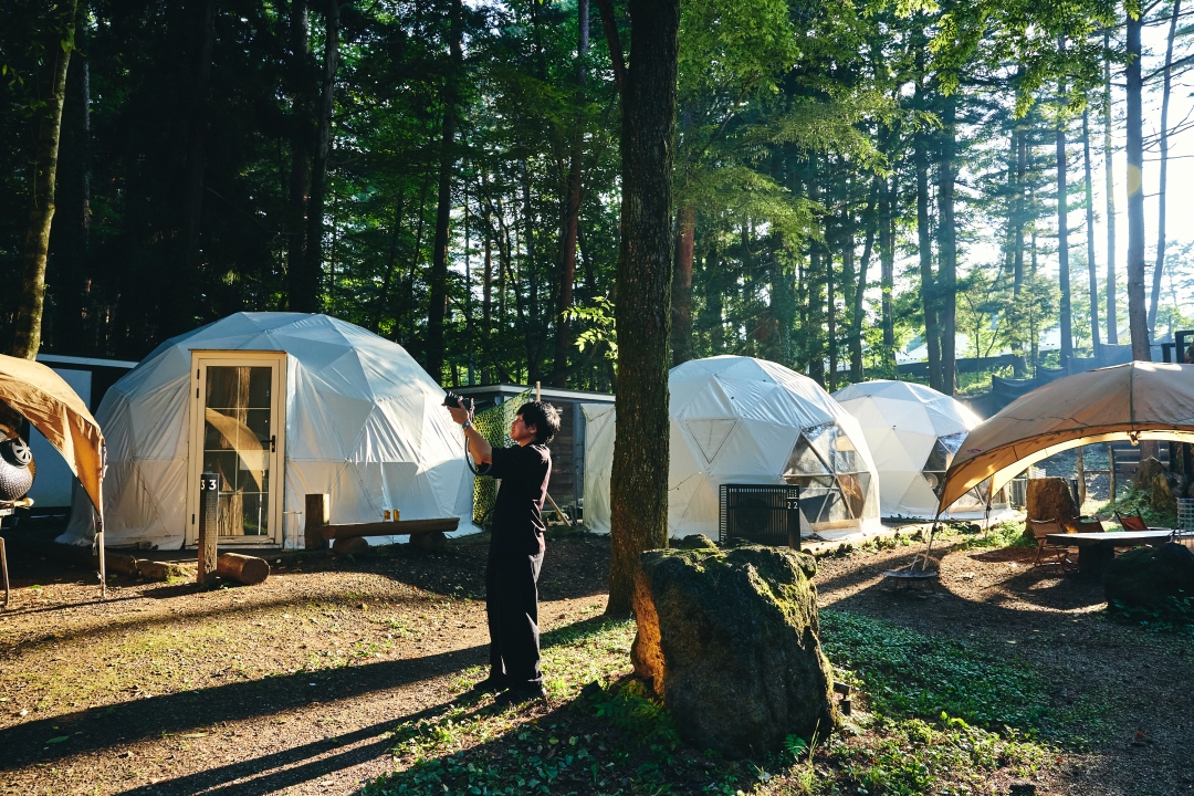 午後からは、富士五湖エリアに移動し、人気の施設「グランピングヴィラハンズ河口湖」へ。同施設は、充実した宿泊設備とサービス、富士山を望むロケーションが人気。