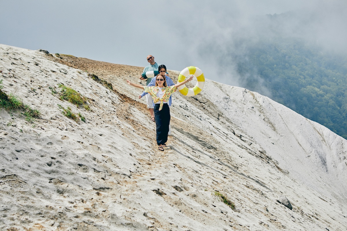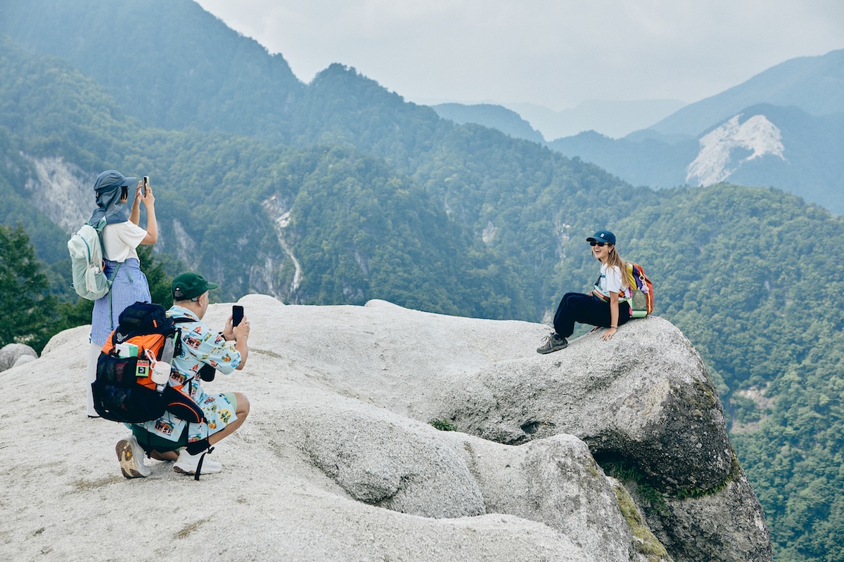 その後は、各自がそれぞれ天空のビーチを満喫。浮き輪を持って海辺ごっこをしてみたり、絶景を見ながら寝転んでみたり、花崗岩に登ってみたり。