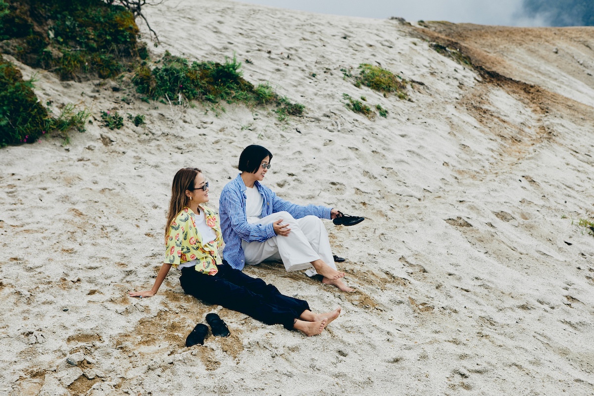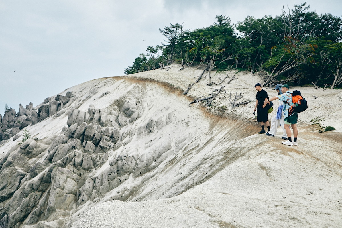 登山口から1時間ほどかけて樹林帯を登ってきた先に待っていたのは、真っ白な砂浜が広がる圧巻の景色だった。