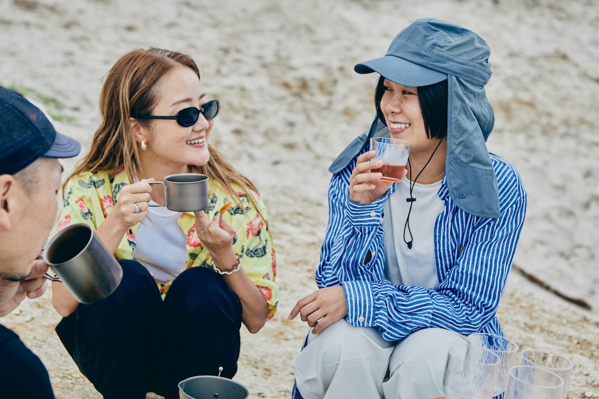 女性陣が絶賛するなか、キャンさんも優雅にテイスティング。日傘を差しつつ、リラックスして、すっかりビーチ気分に浸っている。